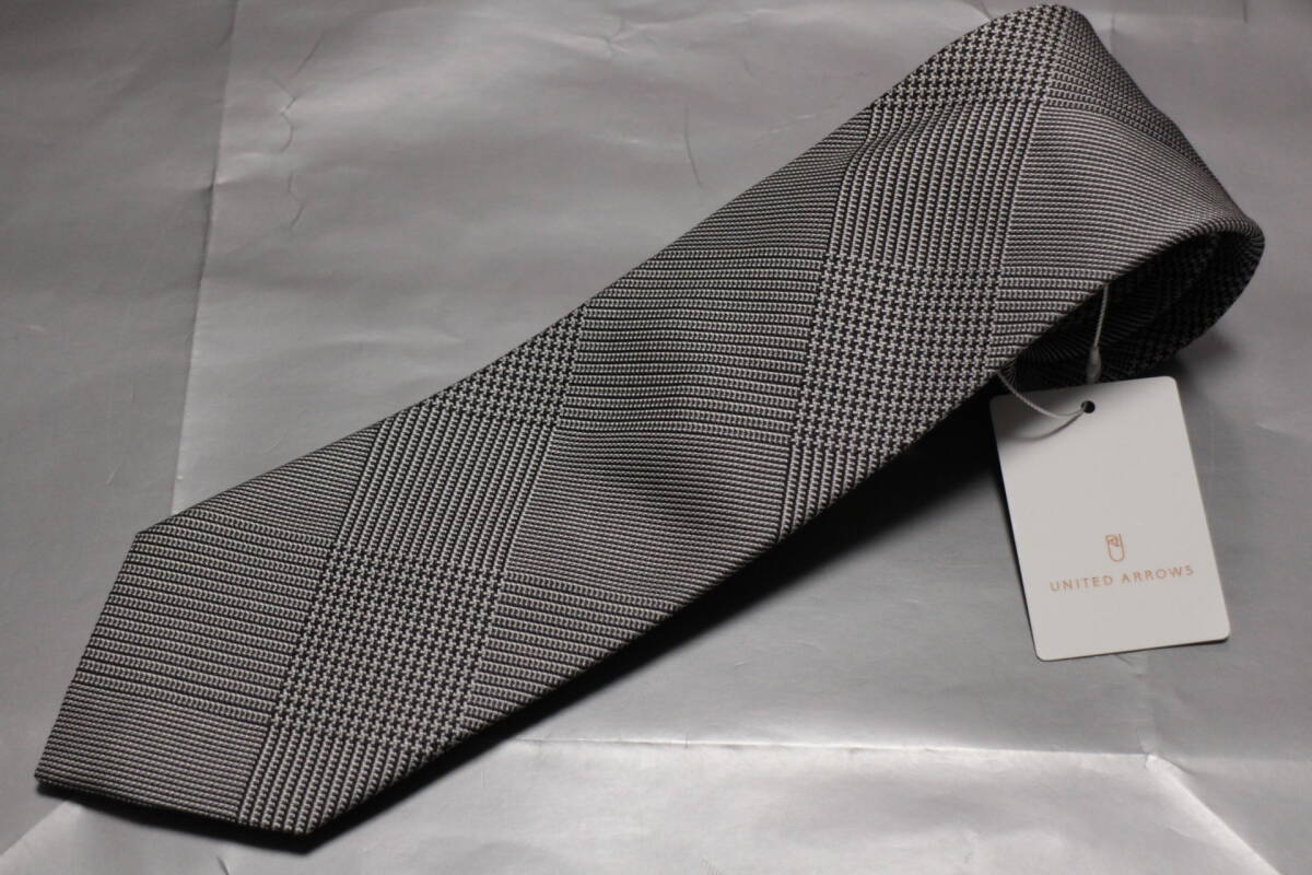 ユナイテッドアローズ新品ネクタイ超クール知的グレンチェック重厚緻密ジャガード織極上シルクハンドメイド
