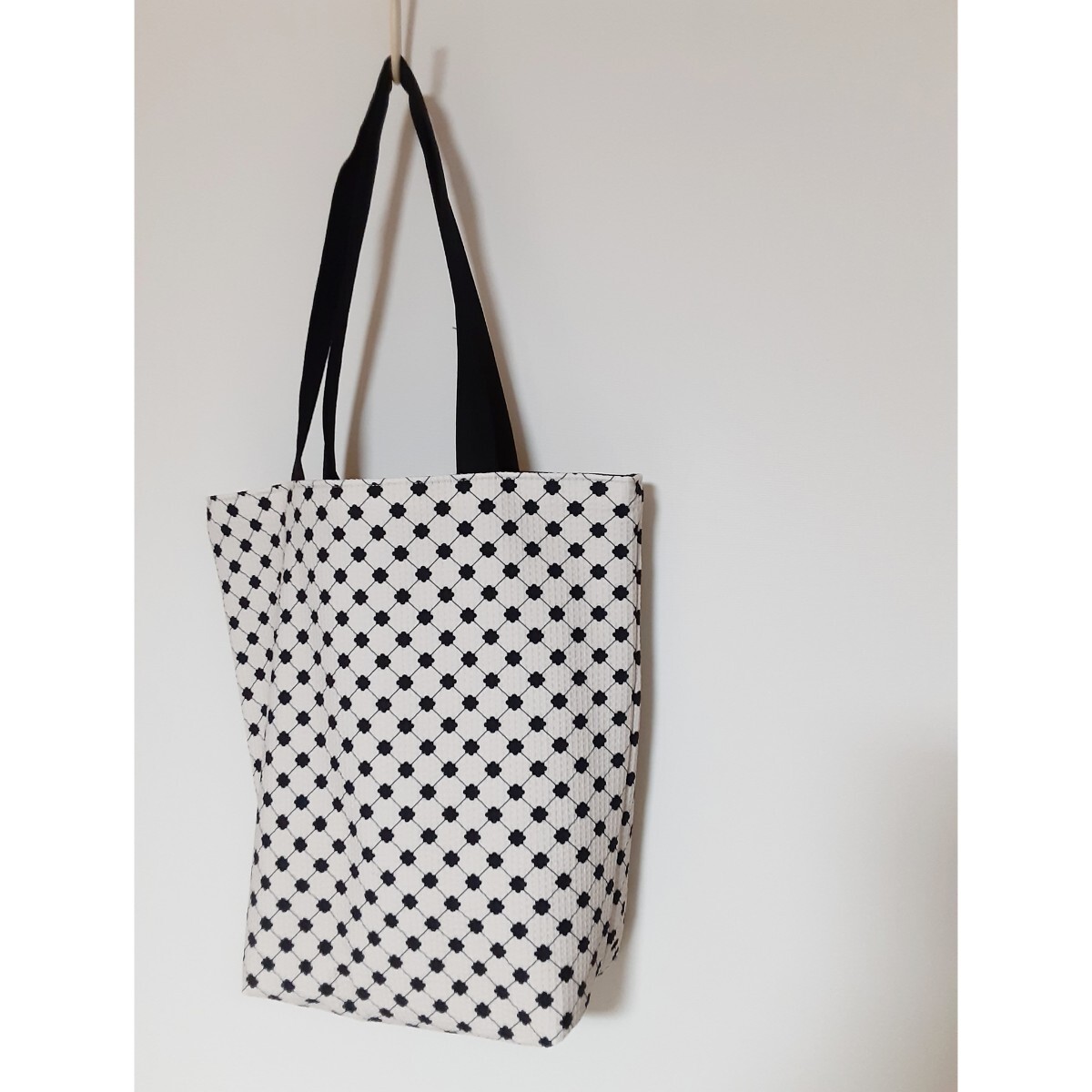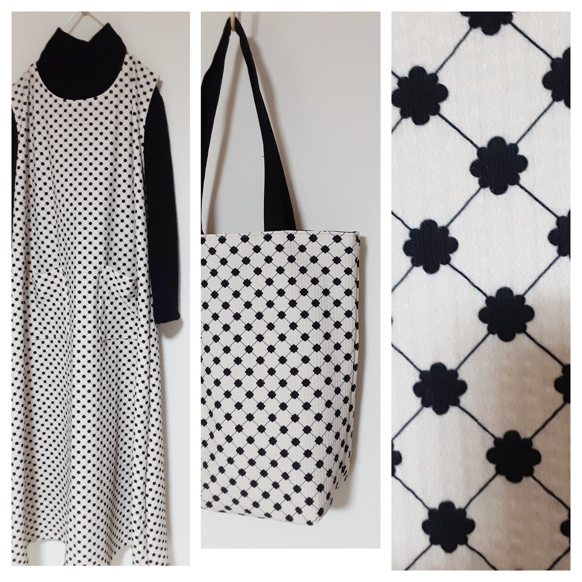 しわになりにくい生地を使って、シンプルなAラインワンピースと同生地のトートバックをお作りしました。