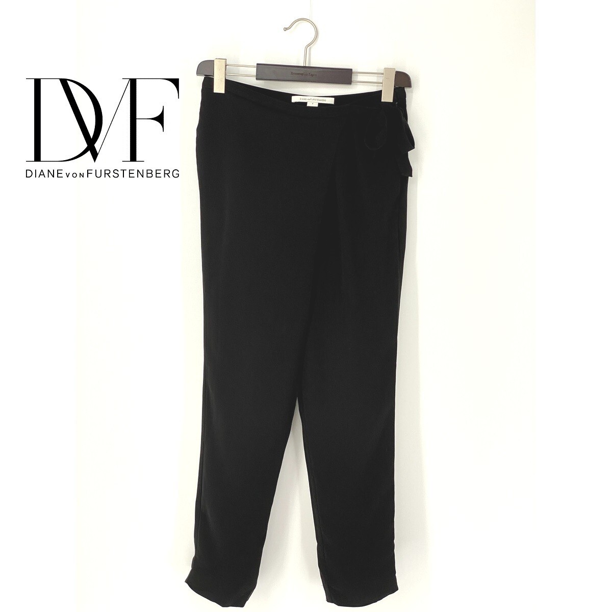 A7060/美品 春夏 Diane von Furstenbergダイアンフォンファステンバーグ トリアセテート リボンタイ 変形 スラックス パンツ4黒/レディース