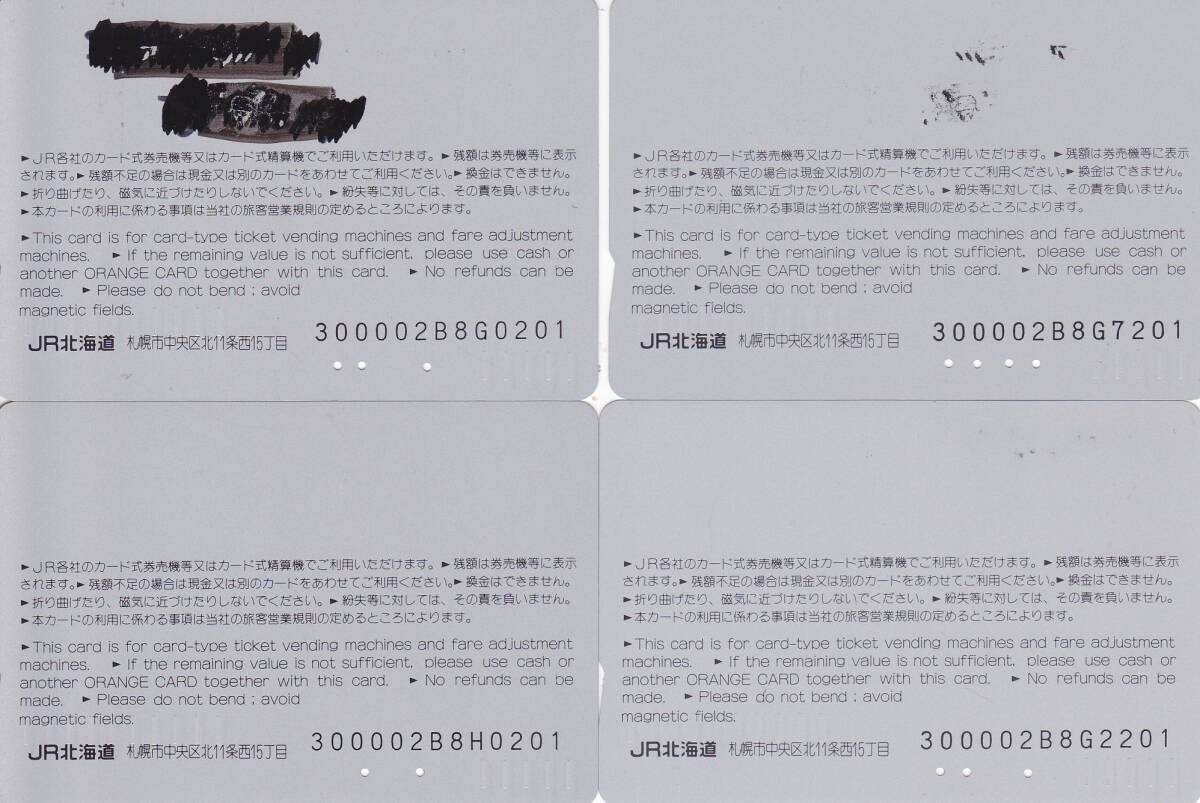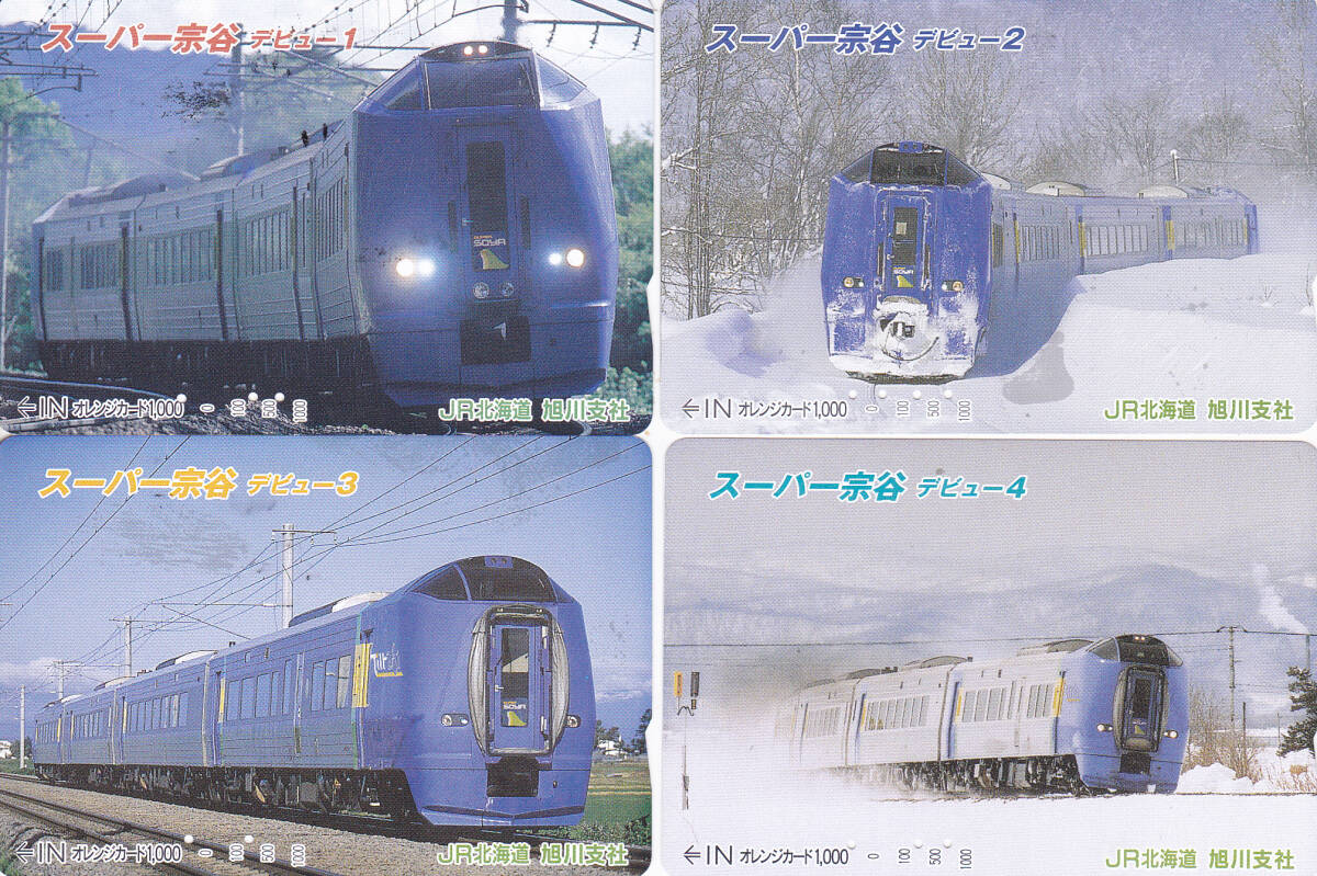 使用済オレンジカード 裏面黒ペン跡有 JR北海道 スーパー宗谷デビュー1~4 1000円券4枚組 説明文参照