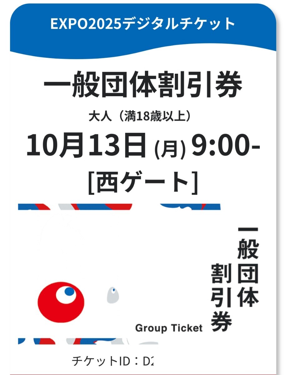 団体入場券のため日時の変更はできませんのでご注意ください。