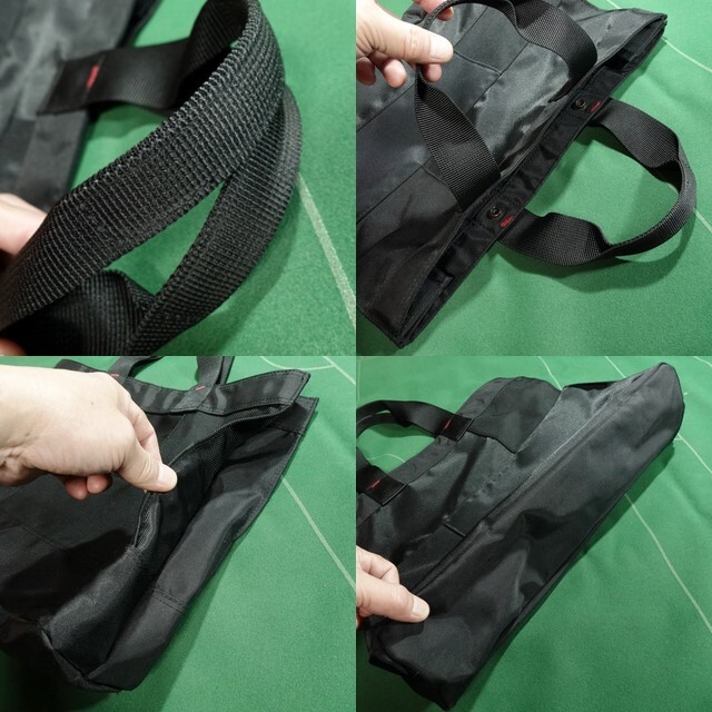 5種(?)の異なった織り方・質感のナイロン素材をパッチワーク状に組み合わせた素材を使用したシンプルなトートバッグです。