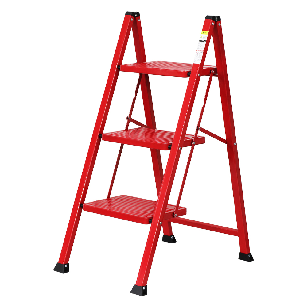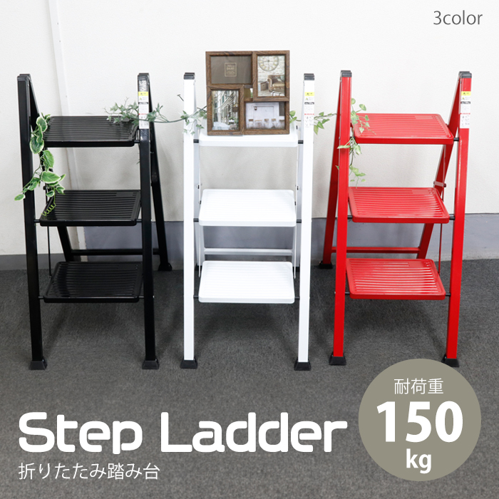 【レッド】3段ステップラダー 耐荷重150kg 高さ67.5cm [WK2004-RD]