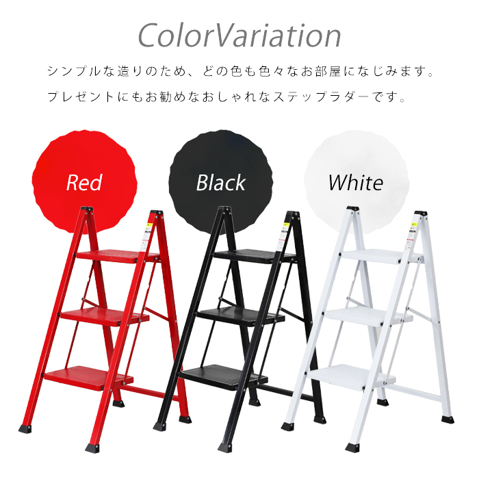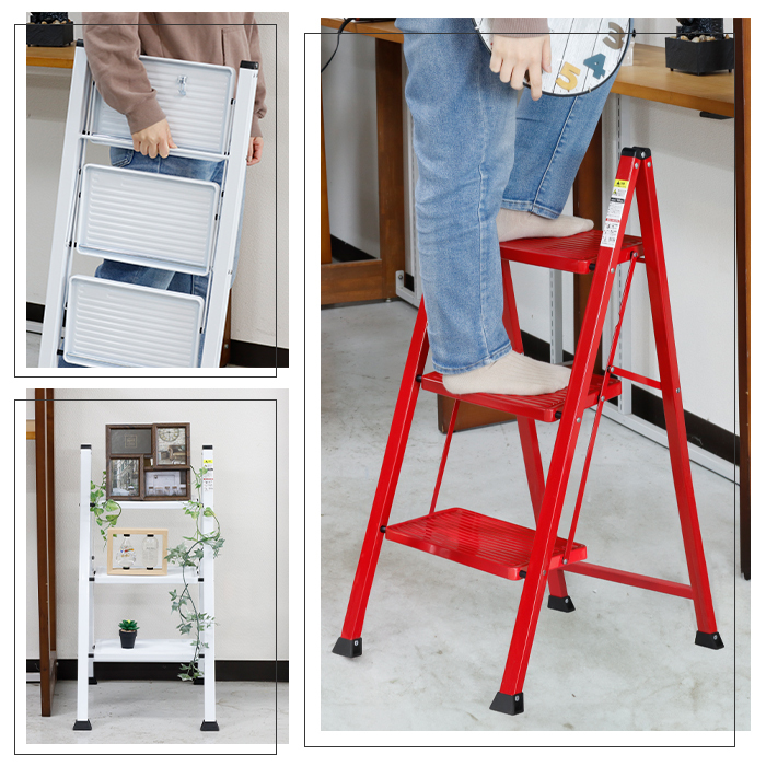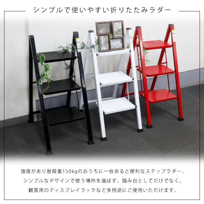 3段ステップラダー 耐荷重150kg 高さ67.5cm レッド [WK2004] 踏み台 脚立 ハシゴ はしご 段差 軽量