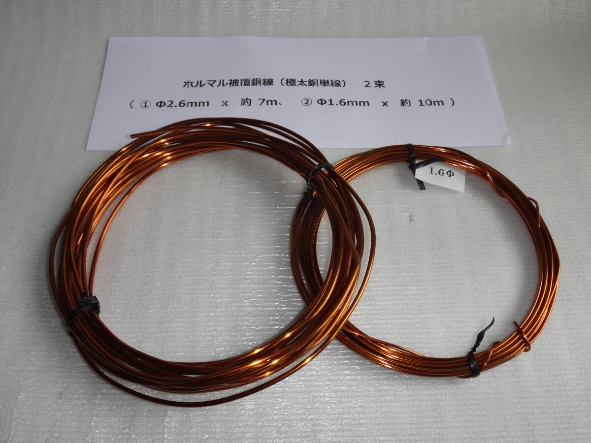 ホルマル被覆銅線(極太銅単線) 2束 ( ① Φ2.6mm x 約 7m、  ② Φ1.6mm x 約 10m )