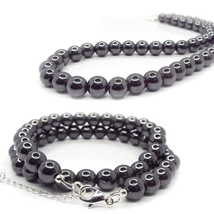 【STONE KITCHEN 天然石 パワーストーン】 ☆ヘマタイトのパワーで身体のバランスを整えコリ解消☆ 肩・首筋がつらい方におすすめのネックレスです。 ヘマタイトネックレスはどんな服装にも 合わせやすいシンプルな美しさです。 「勝利へ導く石」といわれるヘマタイトは 積極的に行動することを助け困難を乗り越えて 目標達成へと導いてくれます。 石言葉は【勝ち取る】です。 全長:約41cm~約47cm 留め具:カニカン 素材:へマタイト 磁気なし 玉サイズ:約10mm 注意事項 ※表示のサイズは必ずしも最大値・最小値のサイズのものが入っているわけではございません。 ※天然石のため同じものでも色味・模様などが異なります。 ※照明の具合で実際とは色合いが異なる場合がございます。 また、天然素材特有のクラック・内包物を有する場合がございます。予めご了承下さい。 | |||