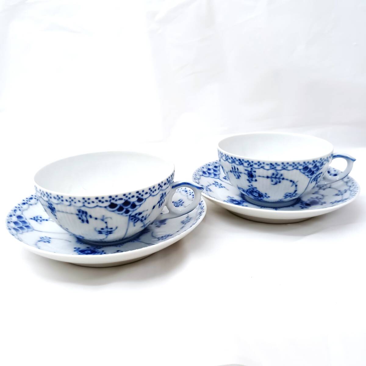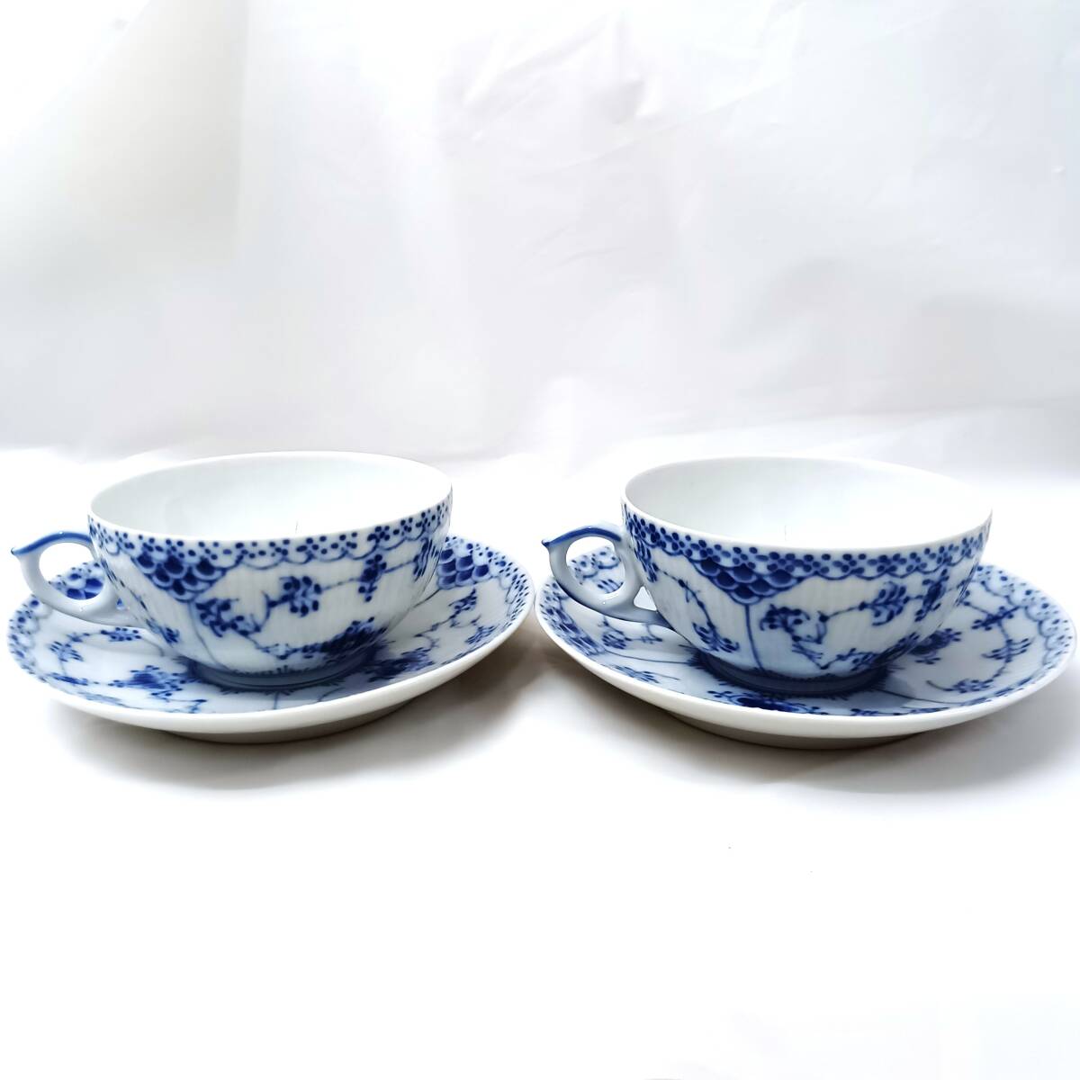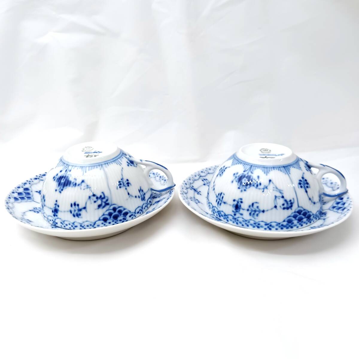 【4610】ROYAL COPENHAGEN ロイヤルコペンハーゲン ブルーフルーテッド ハーフレース カップ&ソーサー 2客 525 525-656 | ||