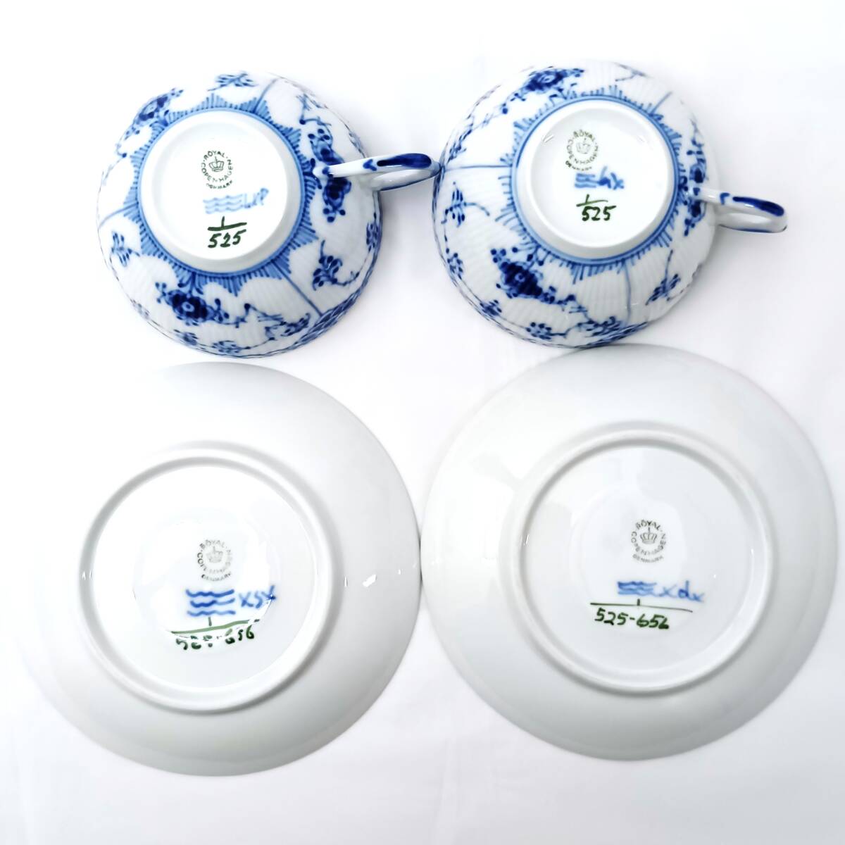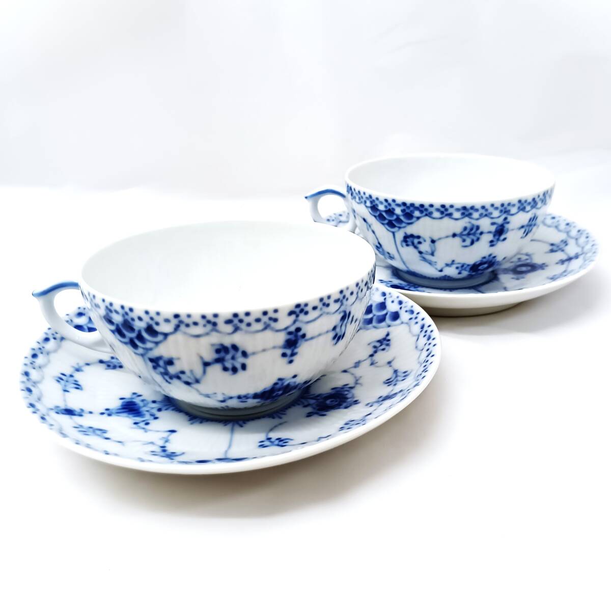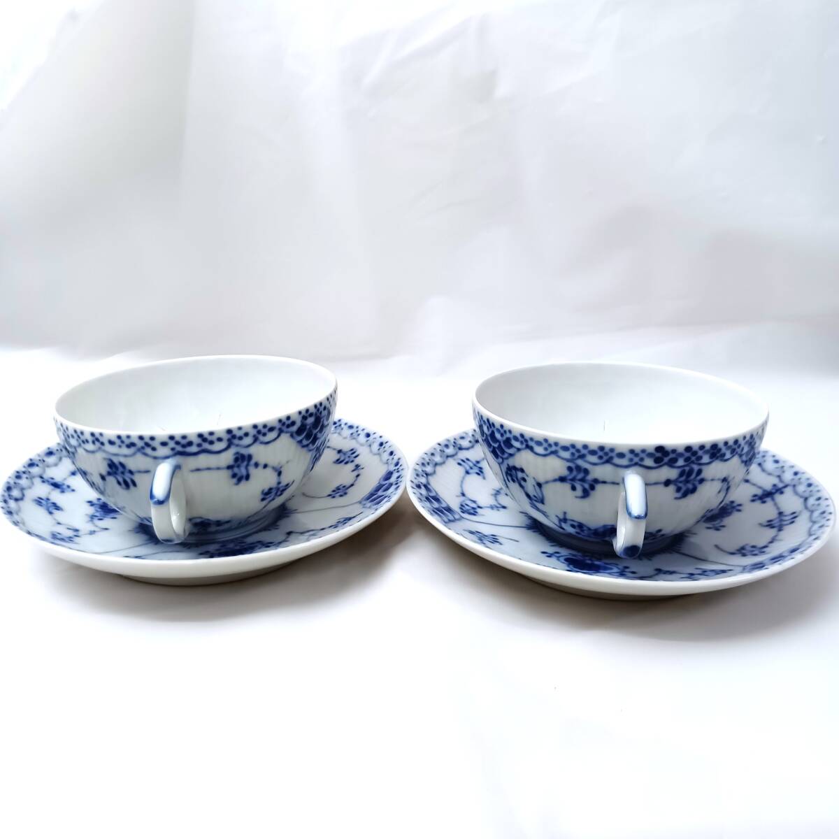【4610】ROYAL COPENHAGEN ロイヤルコペンハーゲン ブルーフルーテッド ハーフレース カップ&ソーサー 2客 525 525-656 | ||
