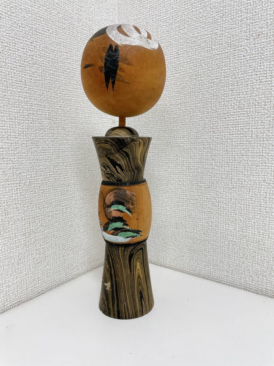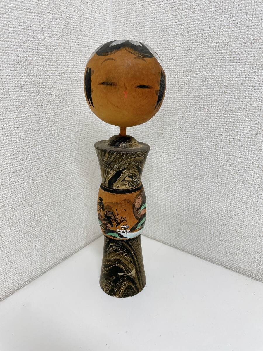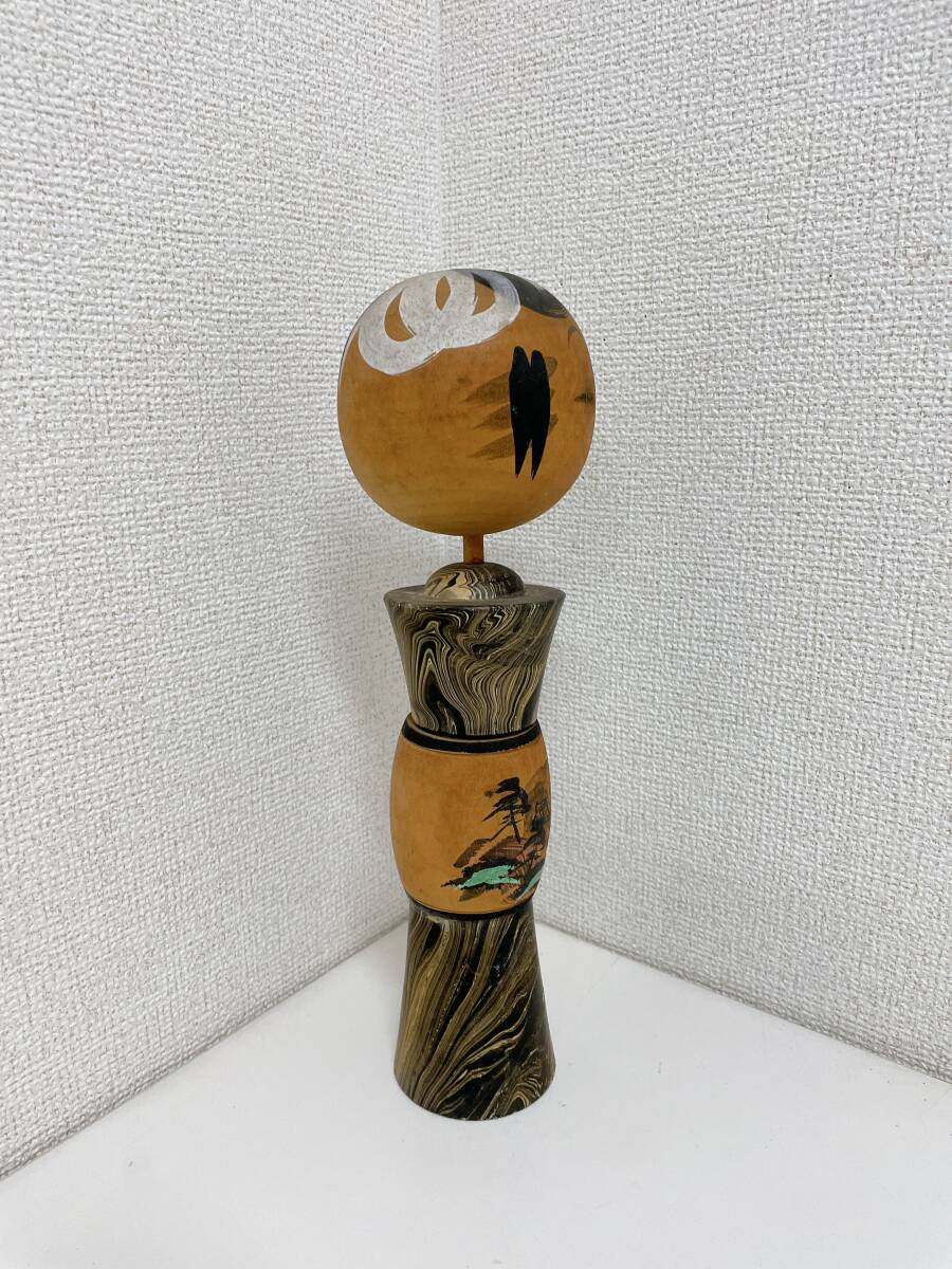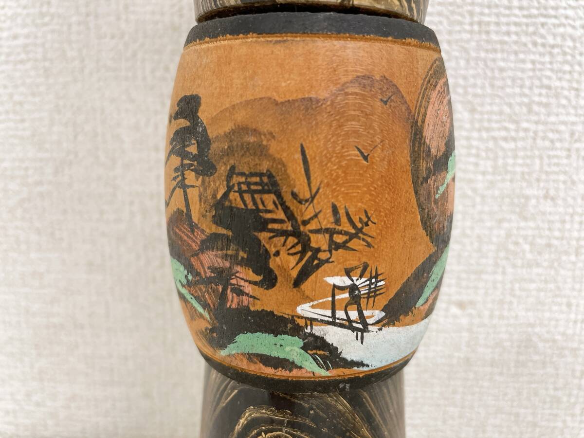 ☆【木製こけし 高さ 約30cm】日本人形 /アンティーク /コレクション /流線形の模様♪ /A79-191