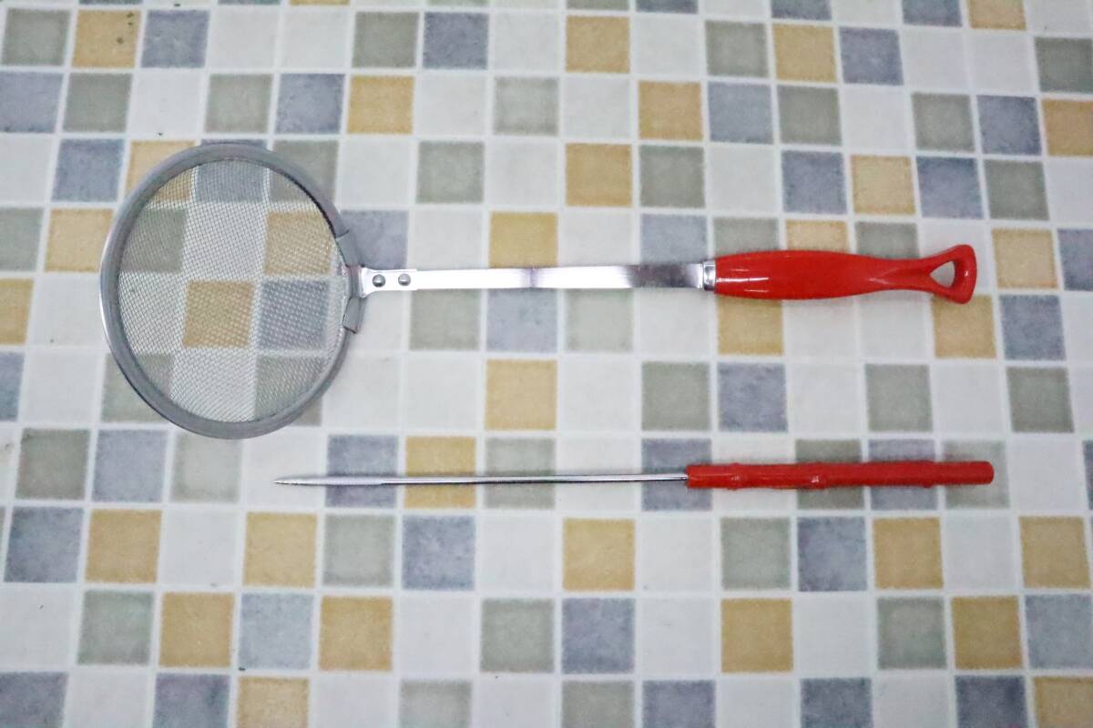 ◆値下げ 調理器具|特製メーター 片手天ぷら鍋 20cm| |揚げ物 フライ 網と串付き■P4237