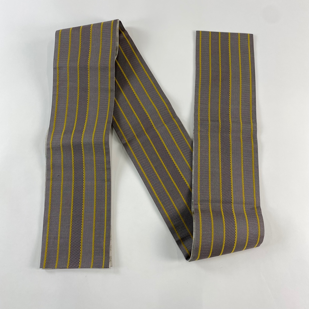 半幅帯 美品 秀品 縞 幾何学 灰茶 正絹 【中古】 |