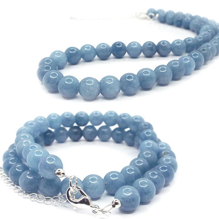 【STONE KITCHEN 天然石 パワーストーン】 碧い海の色を想わせるブルー水晶は透明の水晶に 加工を施し青に変色させたものです。 水晶は「あらゆる幸運を呼ぶ」として絶大な人気を誇る石です。 見ているだけでも癒し効果のある石です。 青い色にはイライラや不満を鎮静する働きがあり 精神を安定させ決断力を高める パワーストーンとして印鑑などにも使用されています。 全長:約41cm~約47cm 留め具:カニカン 素材:ブルークォーツ 天然クォーツ染め 玉サイズ:約8mm 注意事項 ※表示のサイズは必ずしも最大値・最小値のサイズのものが入っているわけではございません。 ※天然石のため同じものでも色味・模様などが異なります。 ※照明の具合で実際とは色合いが異なる場合がございます。 また、天然素材特有のクラック・内包物を有する場合がございます。予めご了承下さい。 | |