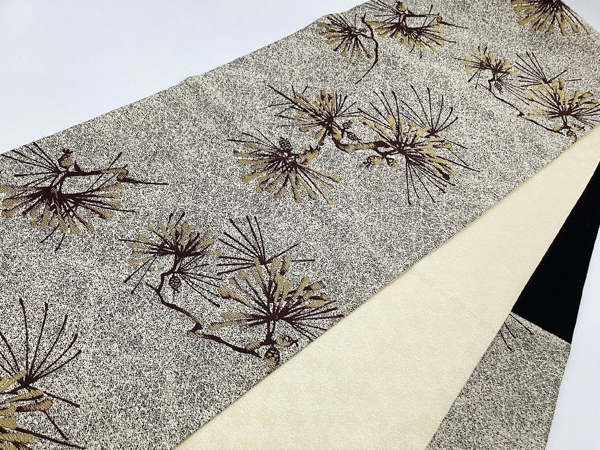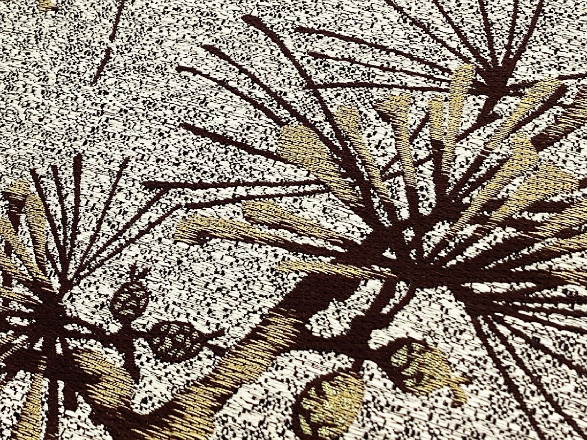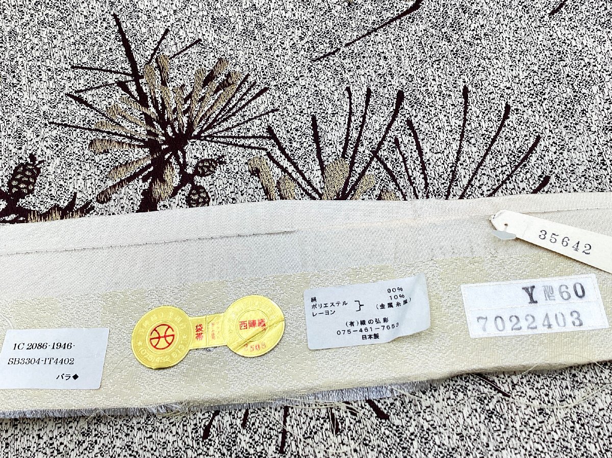 コメント | 中古の正絹お仕立て上がり袋帯です。 高級西陣織の織の弘彩の唐織六通柄松毬文様の軽くて柔らかいお品物です。 使用感少ない未使用に近い綺麗な品物です。 訪問着、附下、色無地等フォーマルからセミフォーマル着物におすすめです。 |