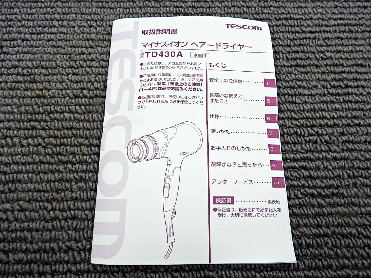 【ほぼ新品】TESCOM テスコム■ione イオネ TD430A ヘアドライヤー 使用感ナシ■動作品「管理№KT927」