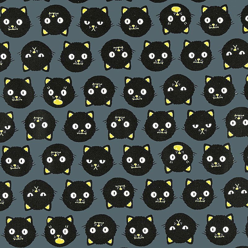 横、縦に黄色い耳のネコの顔を規則的に並べたハロウィン柄。