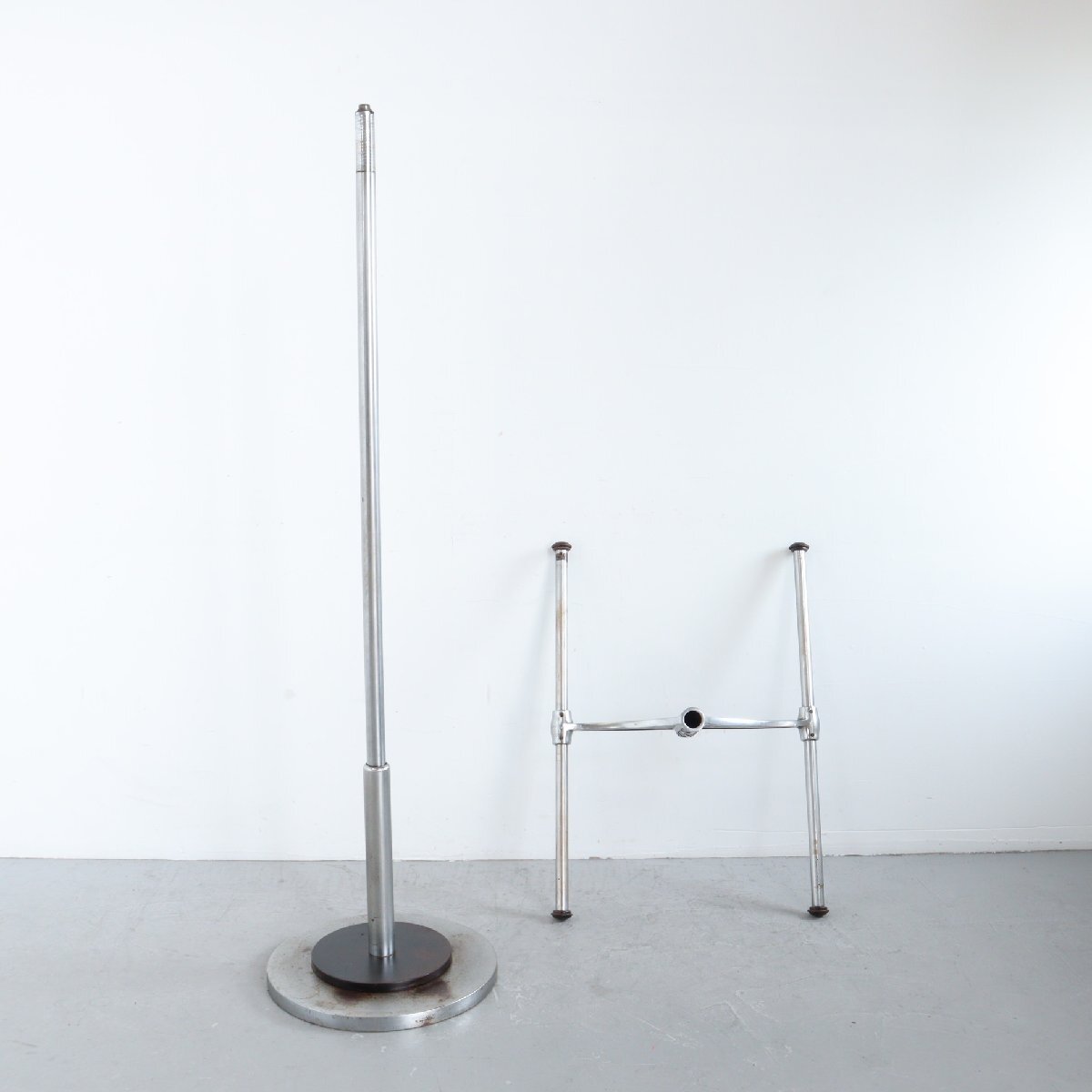 商品説明 explanation | アメリカで使用されていた、コートラックです。 詳しい年代は不明ですが、推定1930年代頃のモノと思われ、当時を感じさせるアールデコ調のデザインです。 アンティークのT字ラックなどが非常に人気ですが、こちらはバーが2つあるのでより多くの衣料を掛けることができます。 この手のコートラックは現地でも非常に人気が高く、中々見つかりにくい希少なアイテムです。 ご自宅や店舗什器にいかがでしょうか。 ※撮影で使用した衣類は別売りです。 |