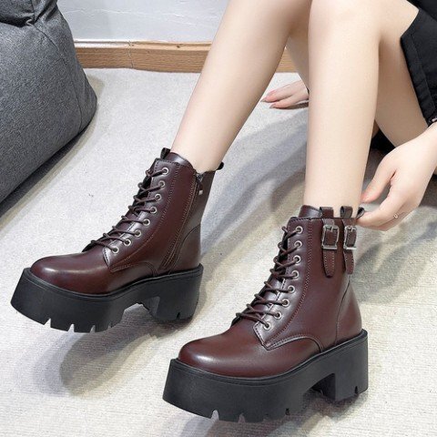 レディース 履きやすいワークブーツ オシャレ厚底ブーツ韓国 エンジニアブーツ コンフォートシューズ サイドファスナー 靴