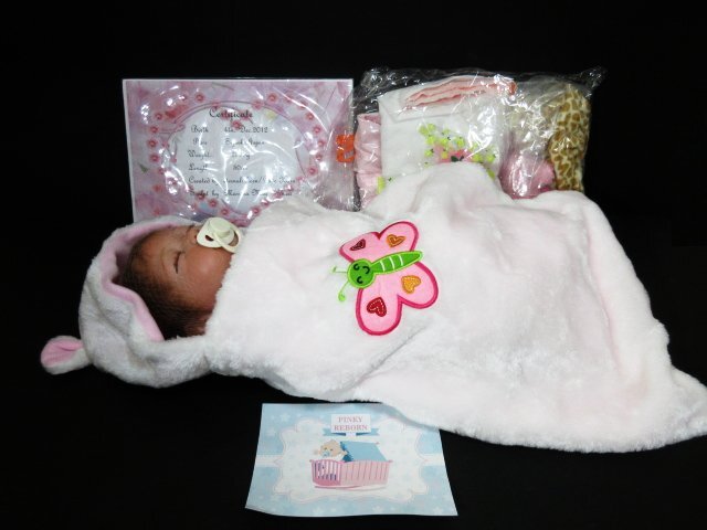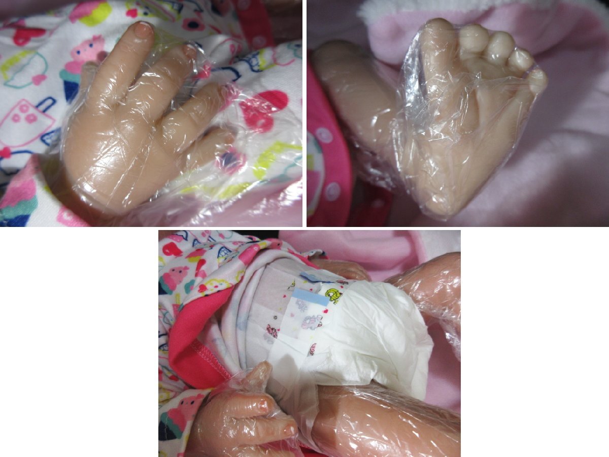 エ566△ アンティーク / リボンドール / リアル / 赤ちゃん / 人形 / ベイビー / 全長50cm / 付属品付 / ソフビ ベビー お世話 / 未使用
