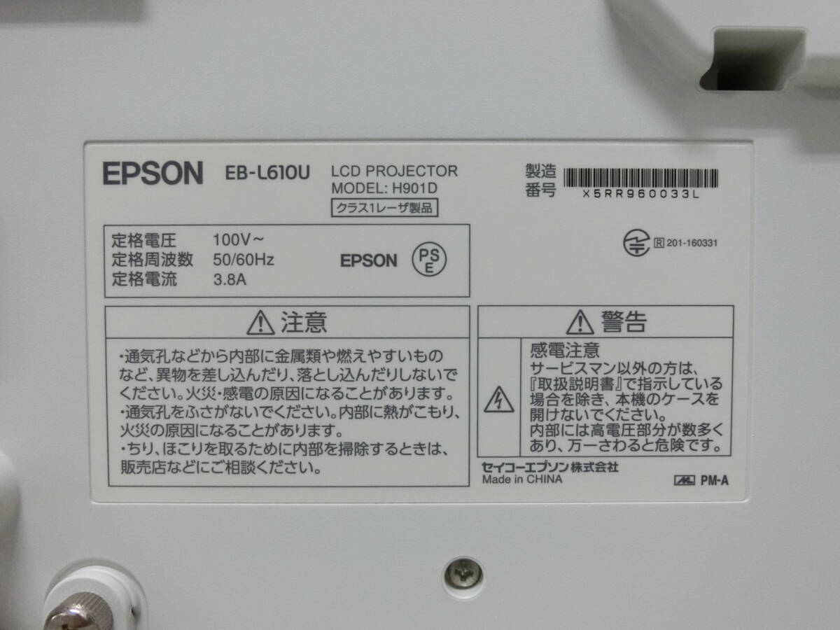 ◆◇EPSON ビジネスプロジェクター レーザー光源高輝度モデル EB-L610U 6000lm◆光源使用時間2365時間◆光源寿命20000時間◇◆