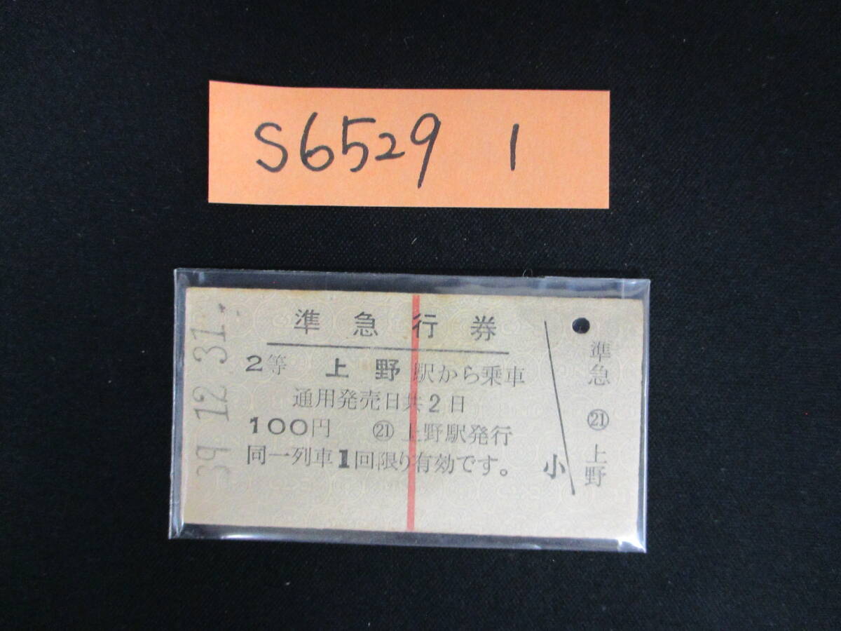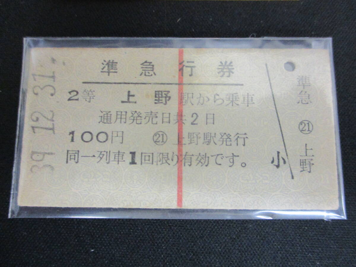 F7 【鉄道硬券】準急行券 2等 上野駅から乗車 昭和39.12.31 約1枚セット 【鉄道切符】 S6529