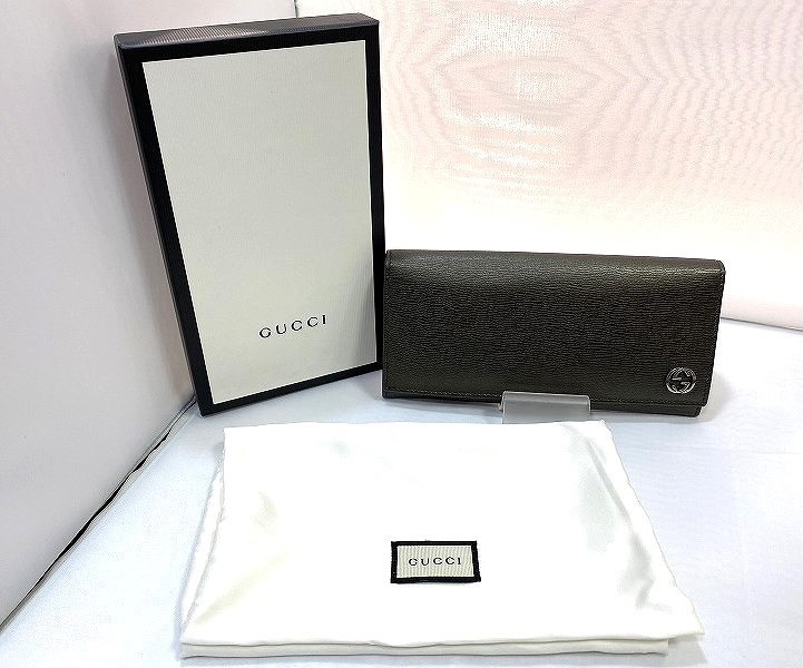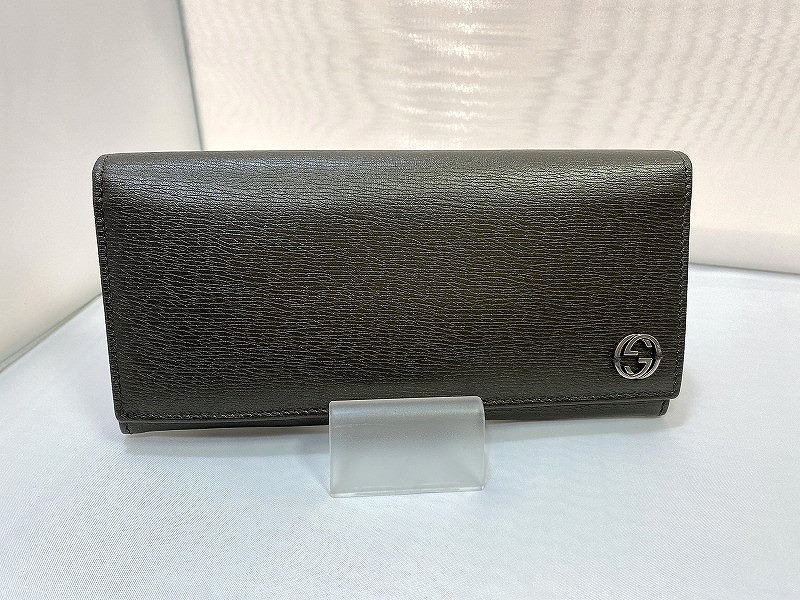 グッチ GUCCI インターロッキング 2つ折り 長財布 オリーブグレー系 256348・496334