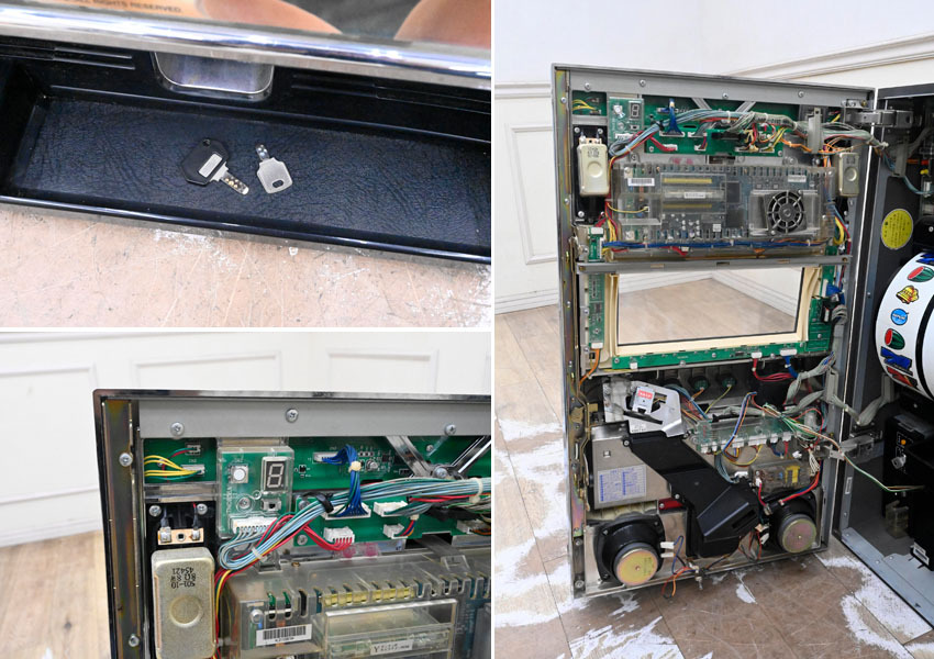 ----------------------------------------------------------------------------------------- ●送料や注意事項は必ずご確認下さい。落札後にトラブルになるケースが増えております。● ◆コンディションは写真・文章にて記載して有りますが、全てのキズの写真は掲載致しておりません。大きなダメージを除き見落とし、記載漏れが有る事はご了承下さい。 ◆当サイトにて出品する商品は多種多彩で、当方商品知識の無い物も多数ありますので落札後の質問やメンテナンス等にはお答えできません。 ◆入札された時点で、画像、文章をご理解していただいたものと判断させていただきます。不明な点は前もってQ&Aからお願い致します。入札後の質問やお電話等でのキャンセルは一切受け付け致しません。 ◆商品説明に「ノークレーム」と記載しているものに関しては、如何なる状況で届いても保証致しません。詳しくは注意事項の「商品到着後について」の最後に記載しておりますのでご確認下さい。 ---------------------------------------------------------------------------------------- 多少のキズ、薄汚れ等有ります。 鍵はドアキー、設定キー各1本ずつです。 幅47.5 奥38.5 高81cm 動作確認に関しては今の所問題は有りませんが、起動時、正常に動作出来ない場合は解除の必要が有ります。 解除方法はネットで調べてください。 簡単な動作は問題なさそうです。 長時間の検査は致していない事、この手の商品不具合が起きやすい事などを考慮し、こちらのお品は運送事故も含めノークレームノーリターンでの出品となります。 運送保険も入りませんので、業者補償もありません。予めご了承下さい。 落札前の動作確認も可能ですので質問か自己紹介からご連絡いただければ対応させて頂きます。但し事前予約必要です。急な訪問には対応出来ませんのでご注意下さい。 | ||