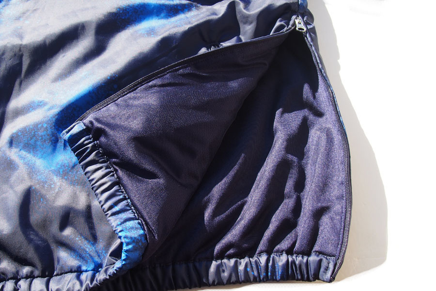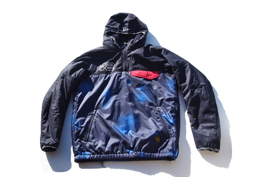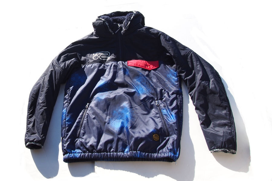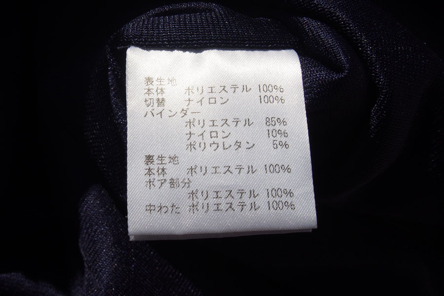 <素材>表生地:(本体)ポリエステル100%、(切替)ナイロン100%、(バインダー)ポリエステル85%、ナイロン10%、ポリウレタン5% 表生地:(本体)ポリエステル100%、(ボア部分)ポリエステル100%、(中綿)ポリエステル100%