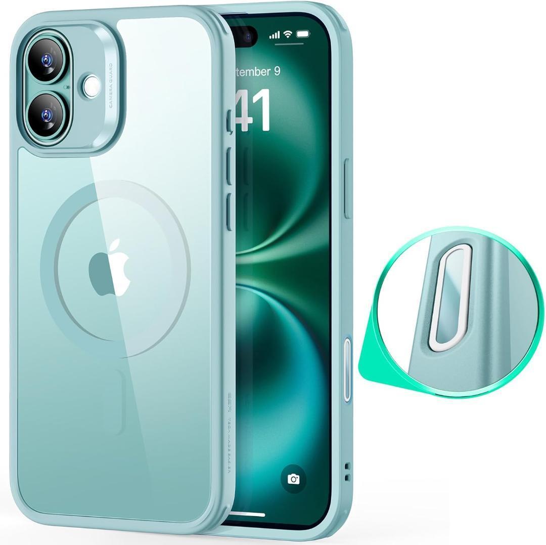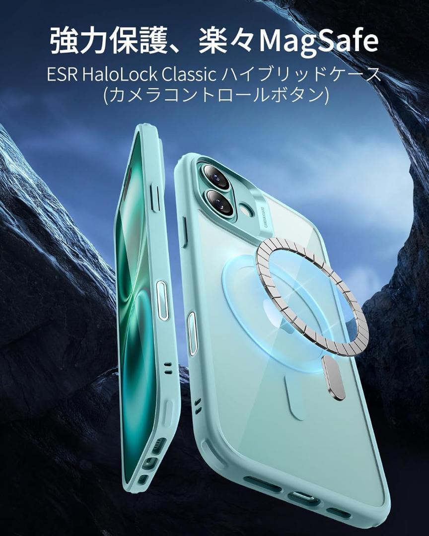 NO.S7-107★【カメラコントロール・3倍米軍MIL規格】ESR iPhone 16 Plus ケース MagSafe対応 iphone16plus用 耐衝撃 軍用規格保護 iphone16プラス 用 マグネットスマホ用 いphone16plusケース Classicハイブリッド(HaloLock) クリア_グリーン