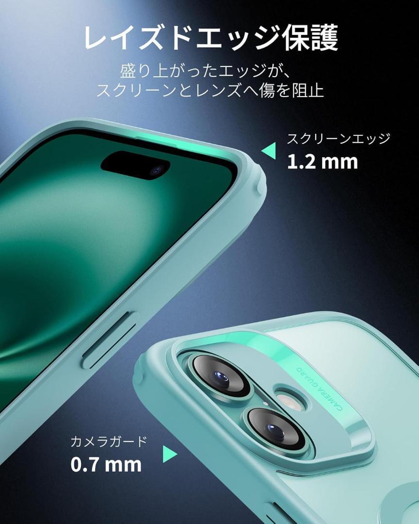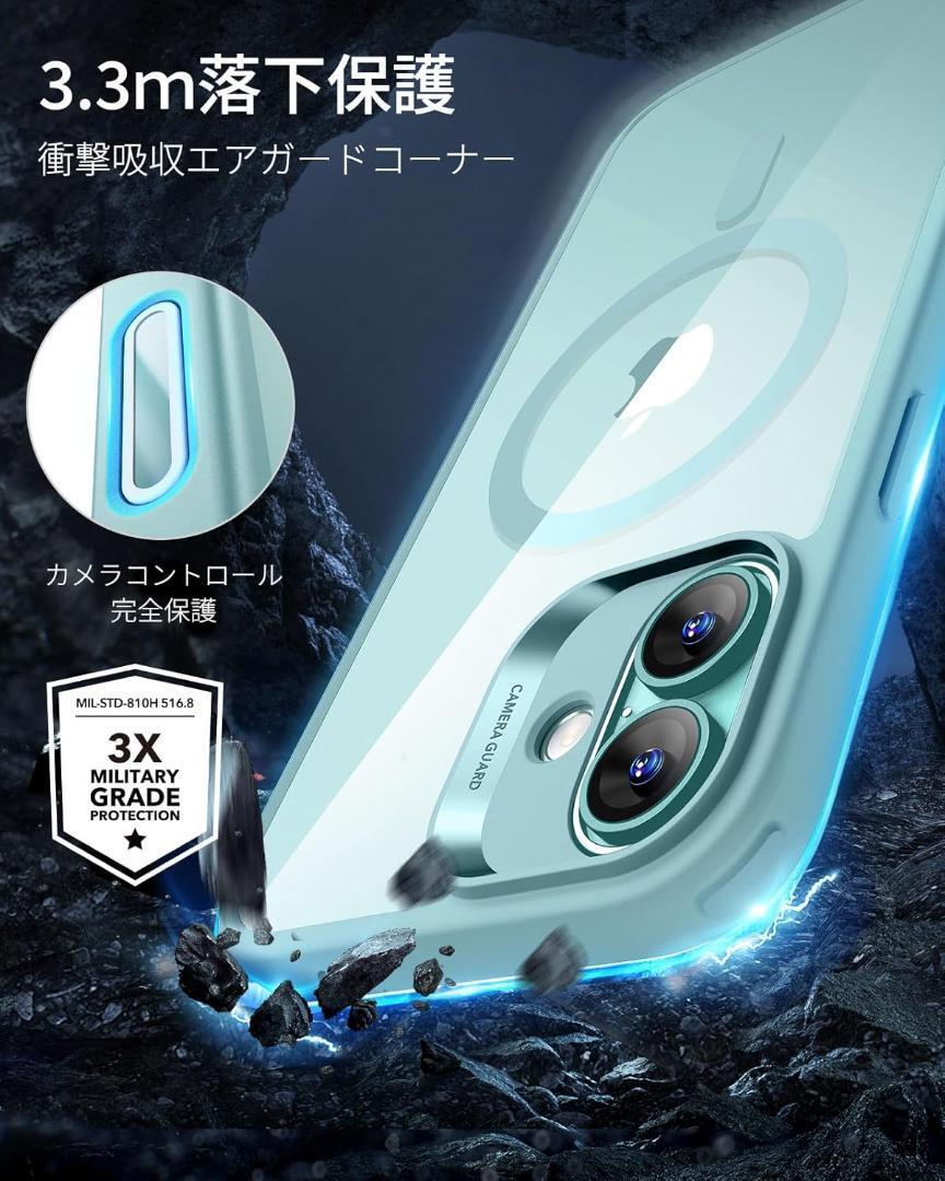 【カメラコントロール・3倍米軍MIL規格】ESR iPhone 16 Plus ケース MagSafe対応 耐衝撃 軍用規格保護 スマホケース クリア_グリーン