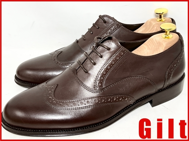 即決★美品展示品 イタリア製 BRUNOMAGLI★6F=約24.5cm レザーウイングチップシューズ ブルーノマリ 茶 ブラウン ドレス 本革 ほぼ未使用