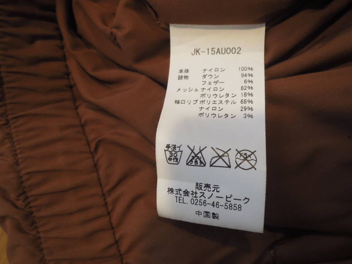 品番:JK-15AU002 表記サイズ: XL   素材:ナイロン100% 中綿:ダウン 色:ブラウン