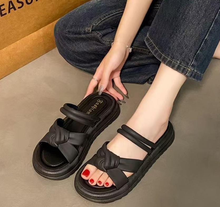 送料無料 匿名 レディース カジュアル ビーチサンダル ブラック 23~23.5cm