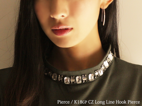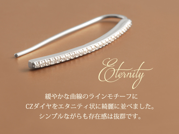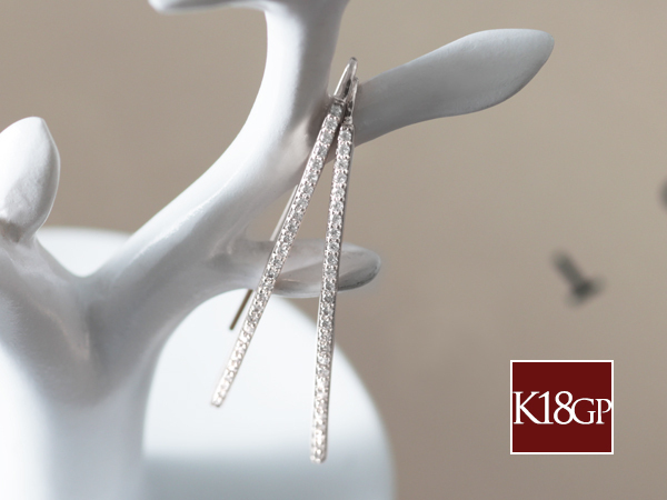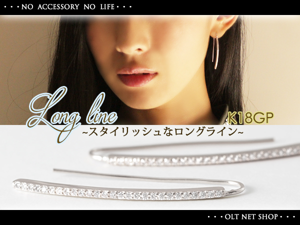 550円スタート/新品/ピアス/レディース/K18GP/ロング/フック/シルバー/18金/ホワイトゴールド/エタニティ/ダイヤ/CZ/女性/女/シンプル/長い