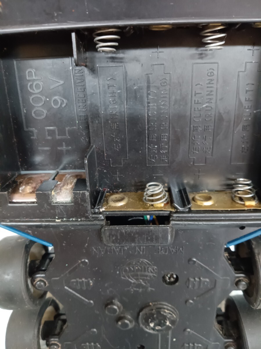 素人判断です。電池BOXに液漏れがあり通電しないと思います。  すべて未確認です。