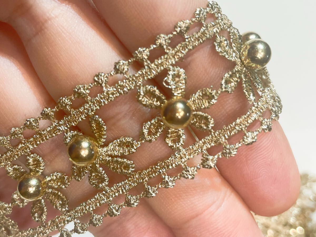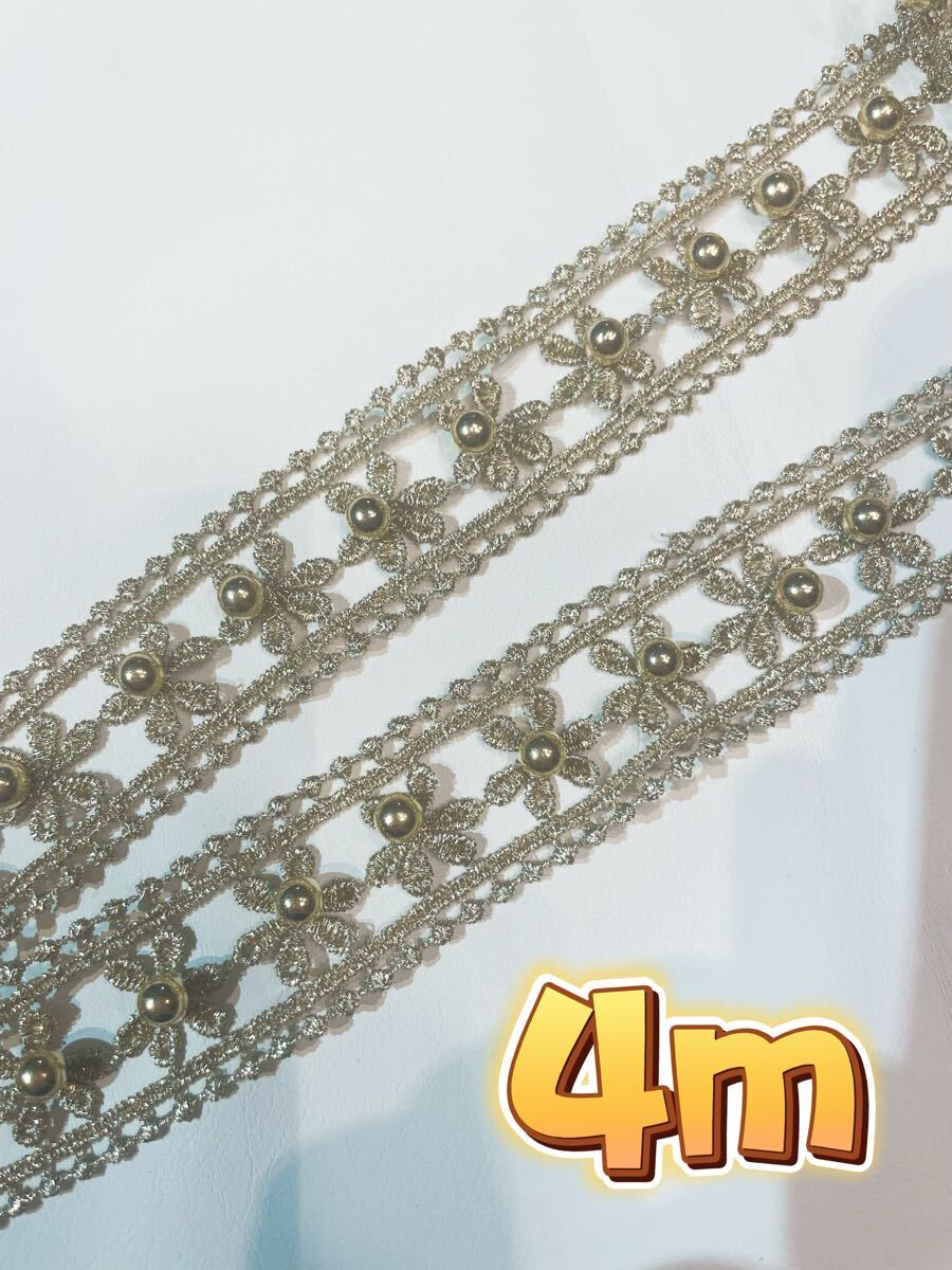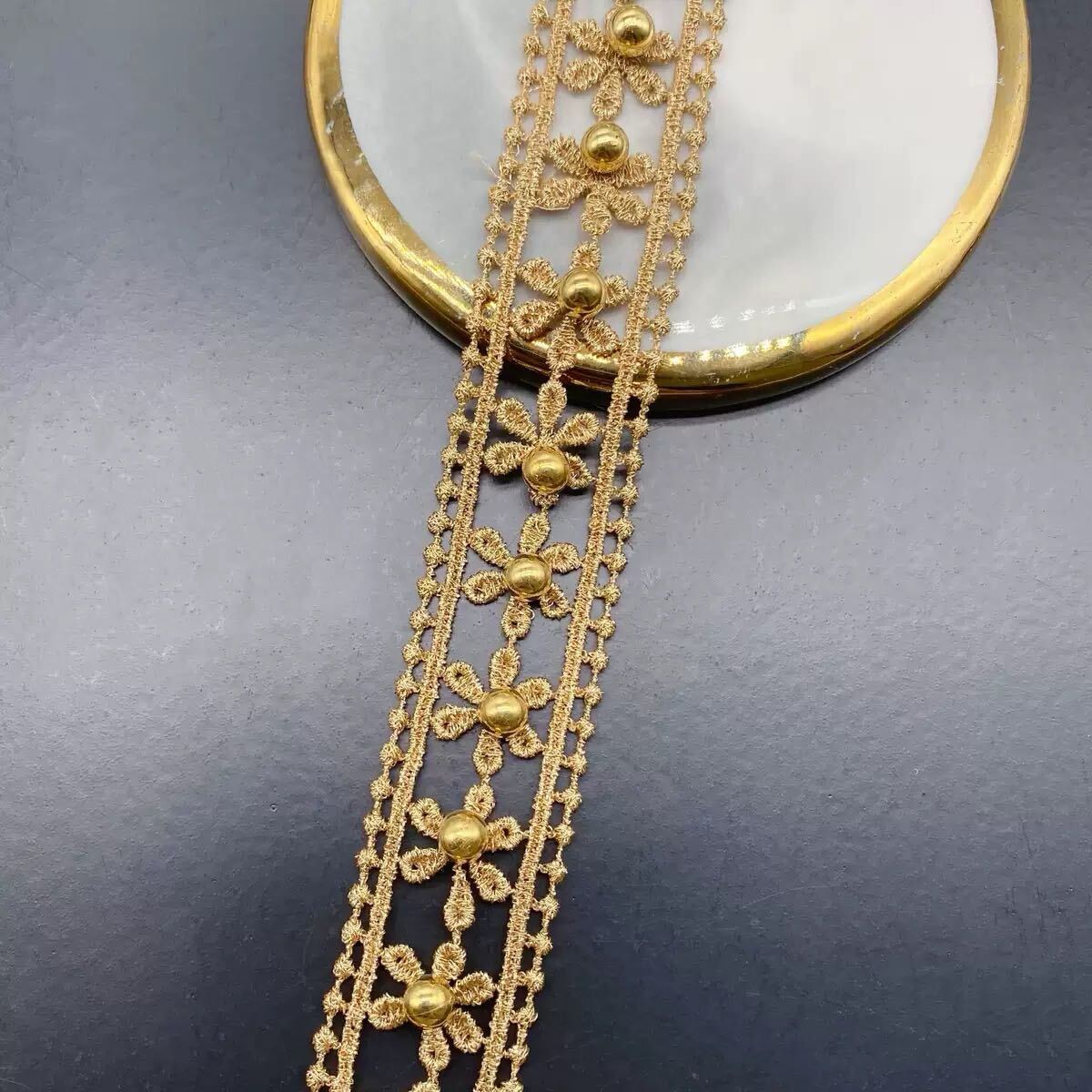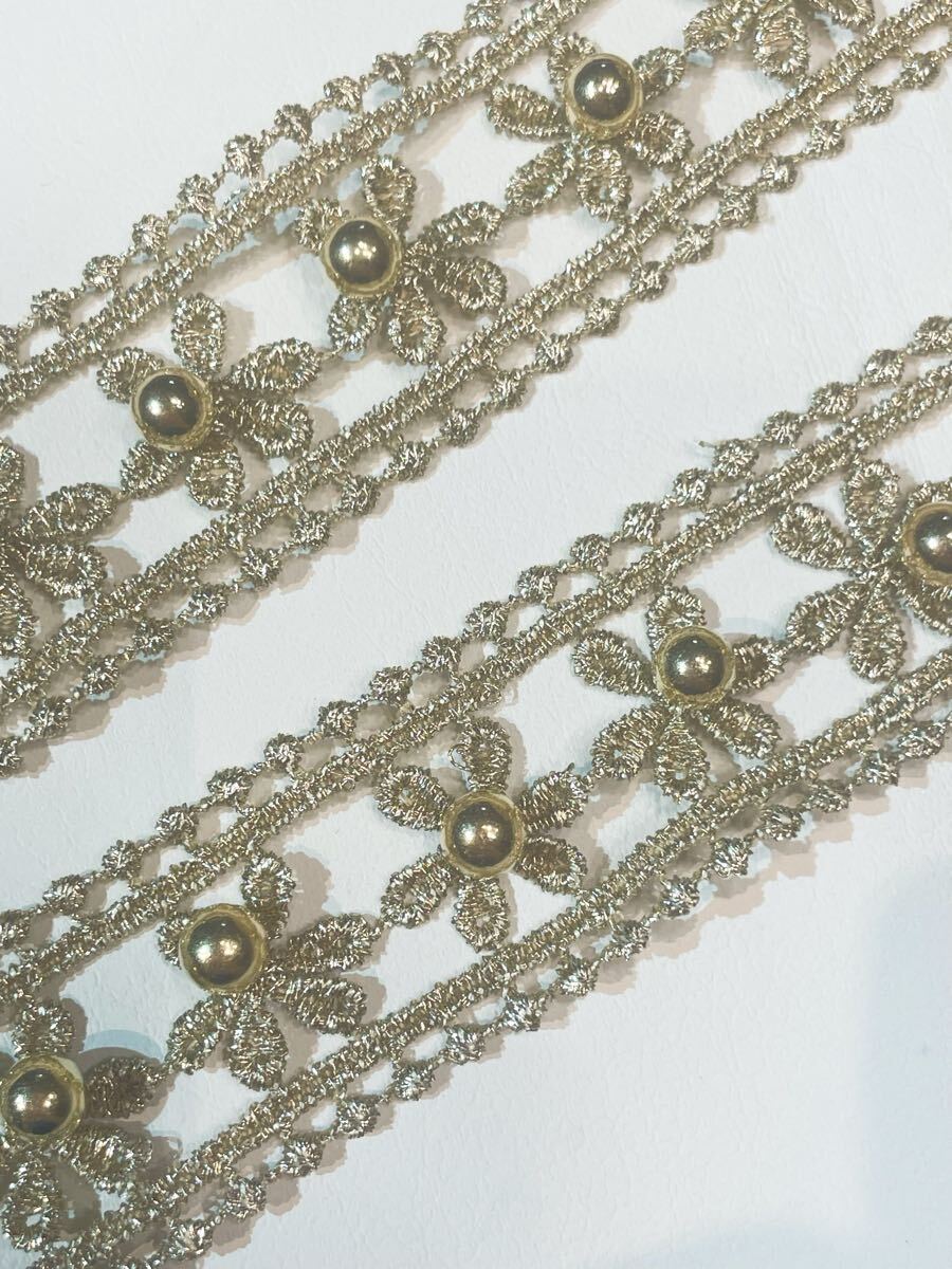 華やかなゴールドカラーのフラワーレースです