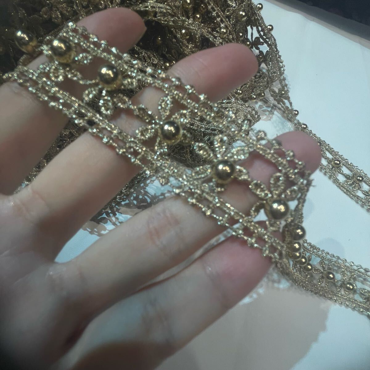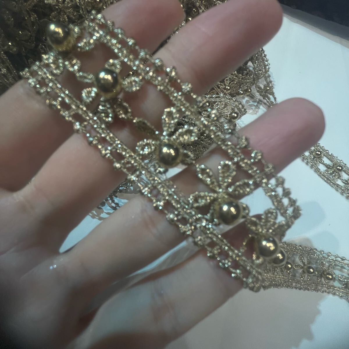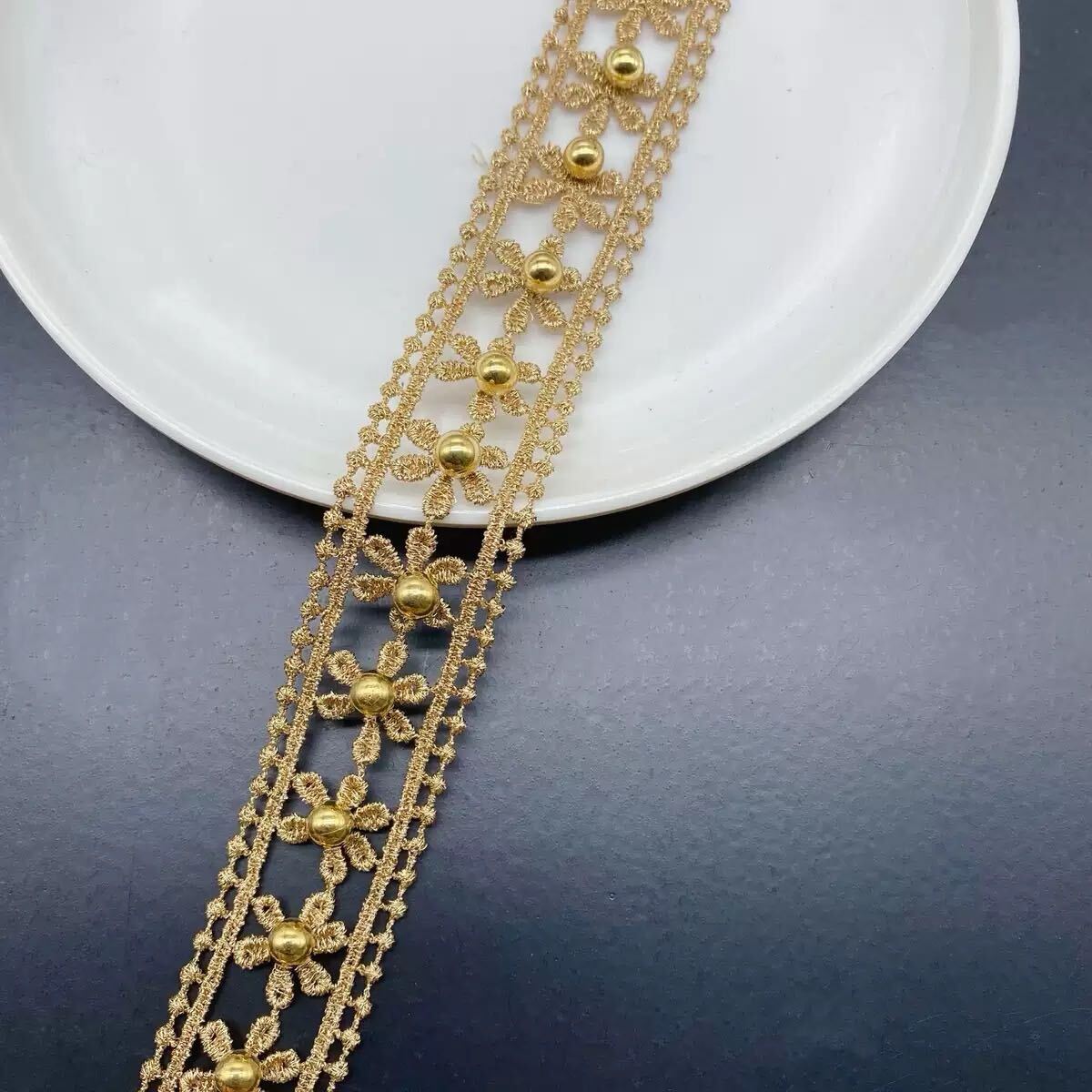 華やかなゴールドカラーのフラワーレースです
