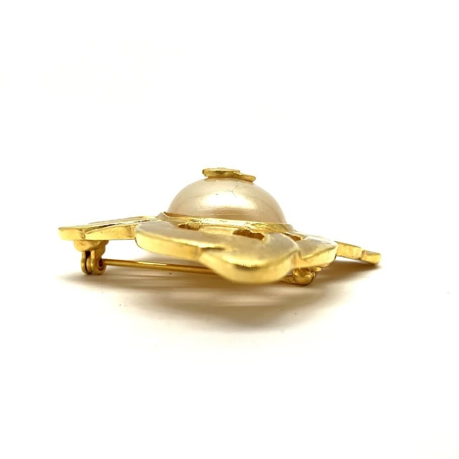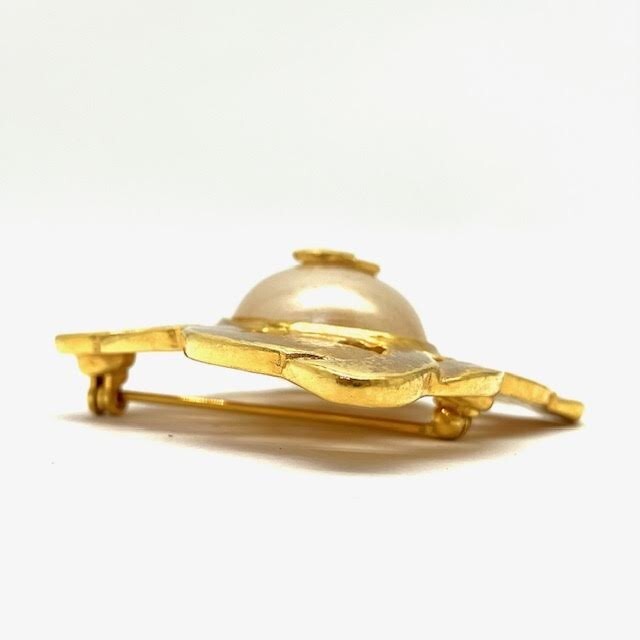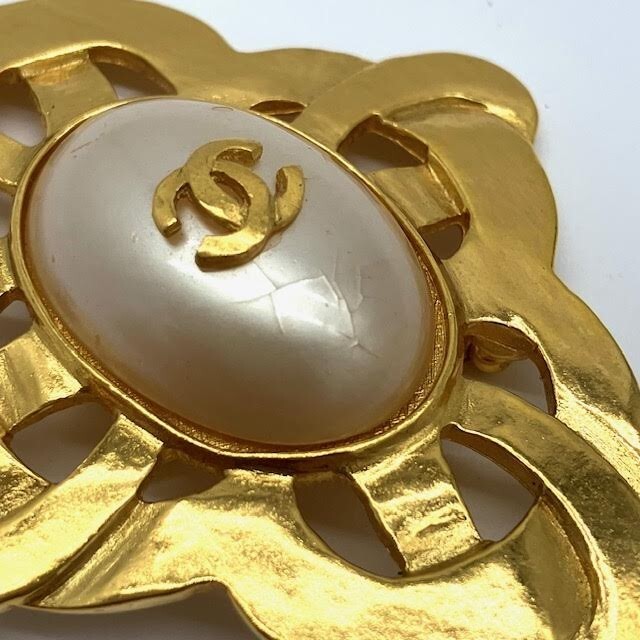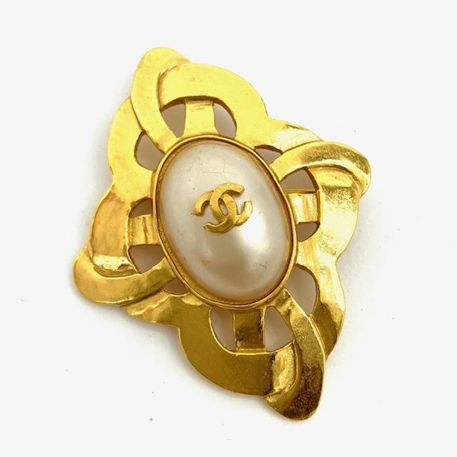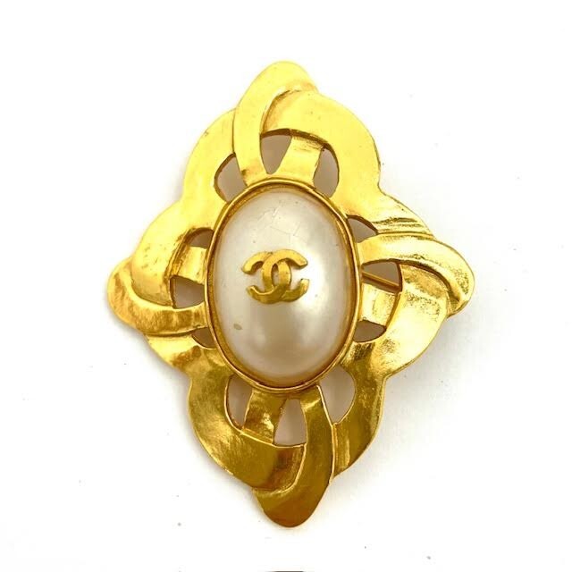 仙104 CHANEL ココマーク フェイクパール ブローチ 97P ゴールドカラー ひし形 シャネル ヴィンテージ アクセサリー