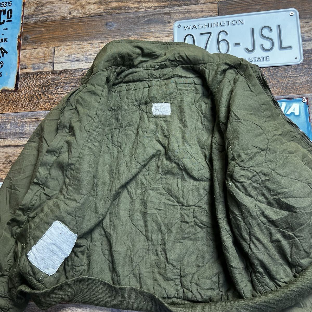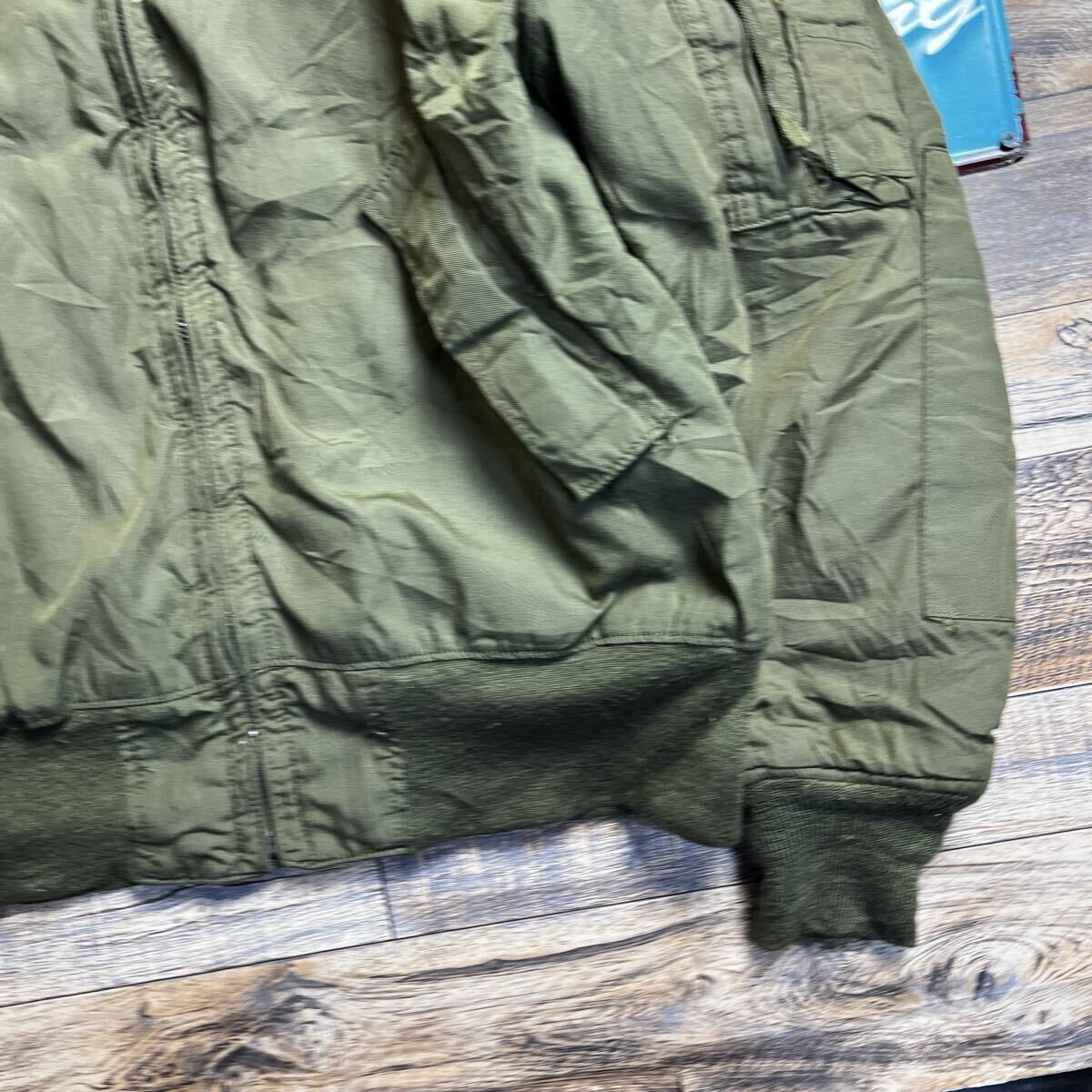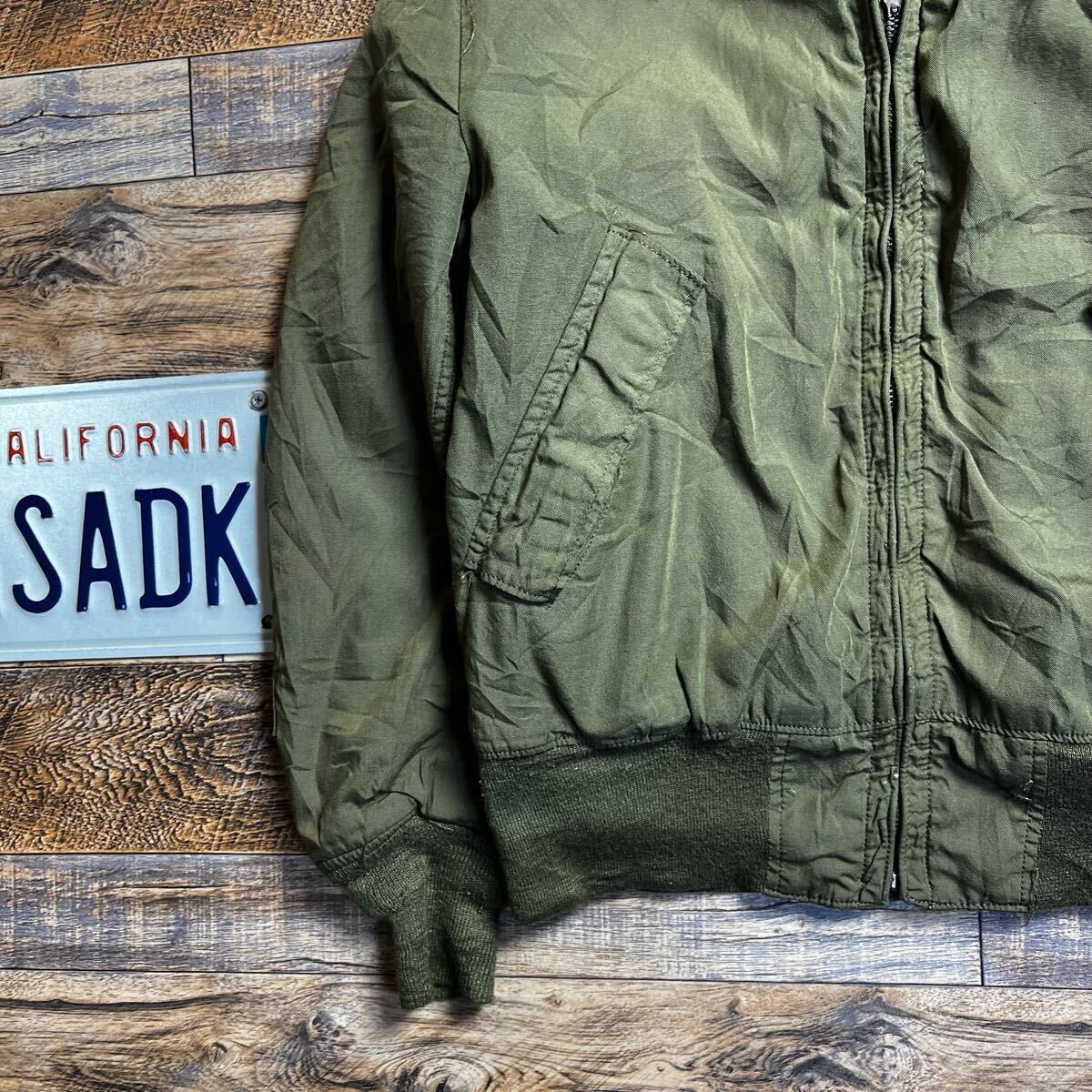ジップの取手欠損。全体的に使用感あり。リブに毛羽立ちがあります。古着ミリタリーらしい雰囲気をお楽しみいただけるコンディションです。