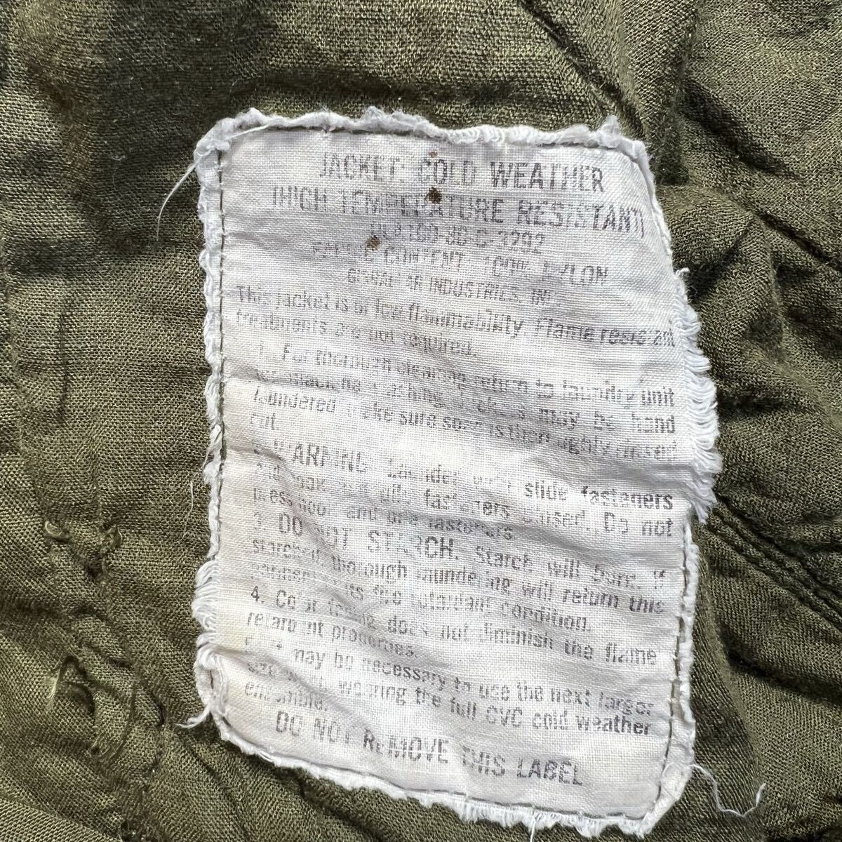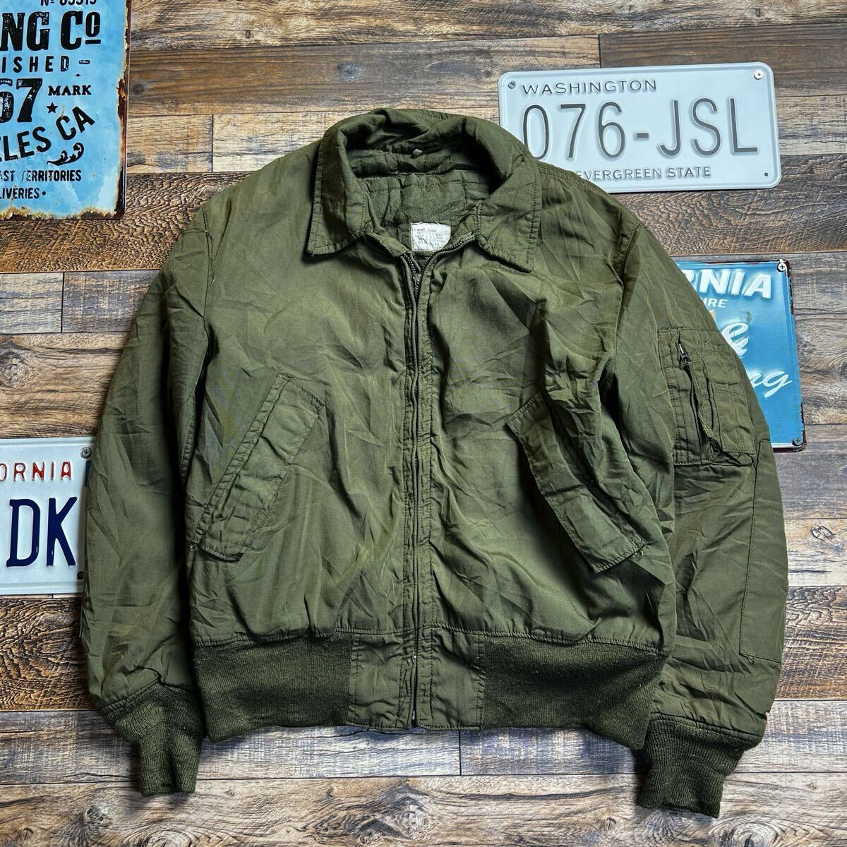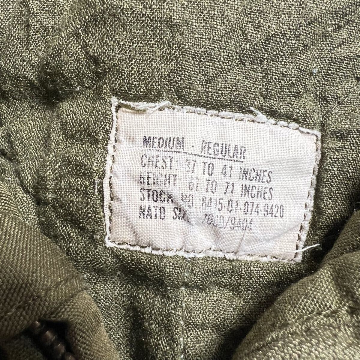 ジップの取手欠損。全体的に使用感あり。リブに毛羽立ちがあります。古着ミリタリーらしい雰囲気をお楽しみいただけるコンディションです。