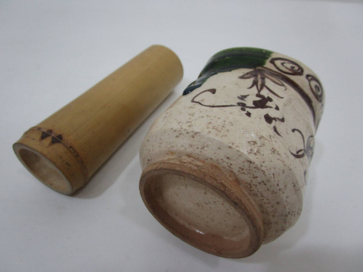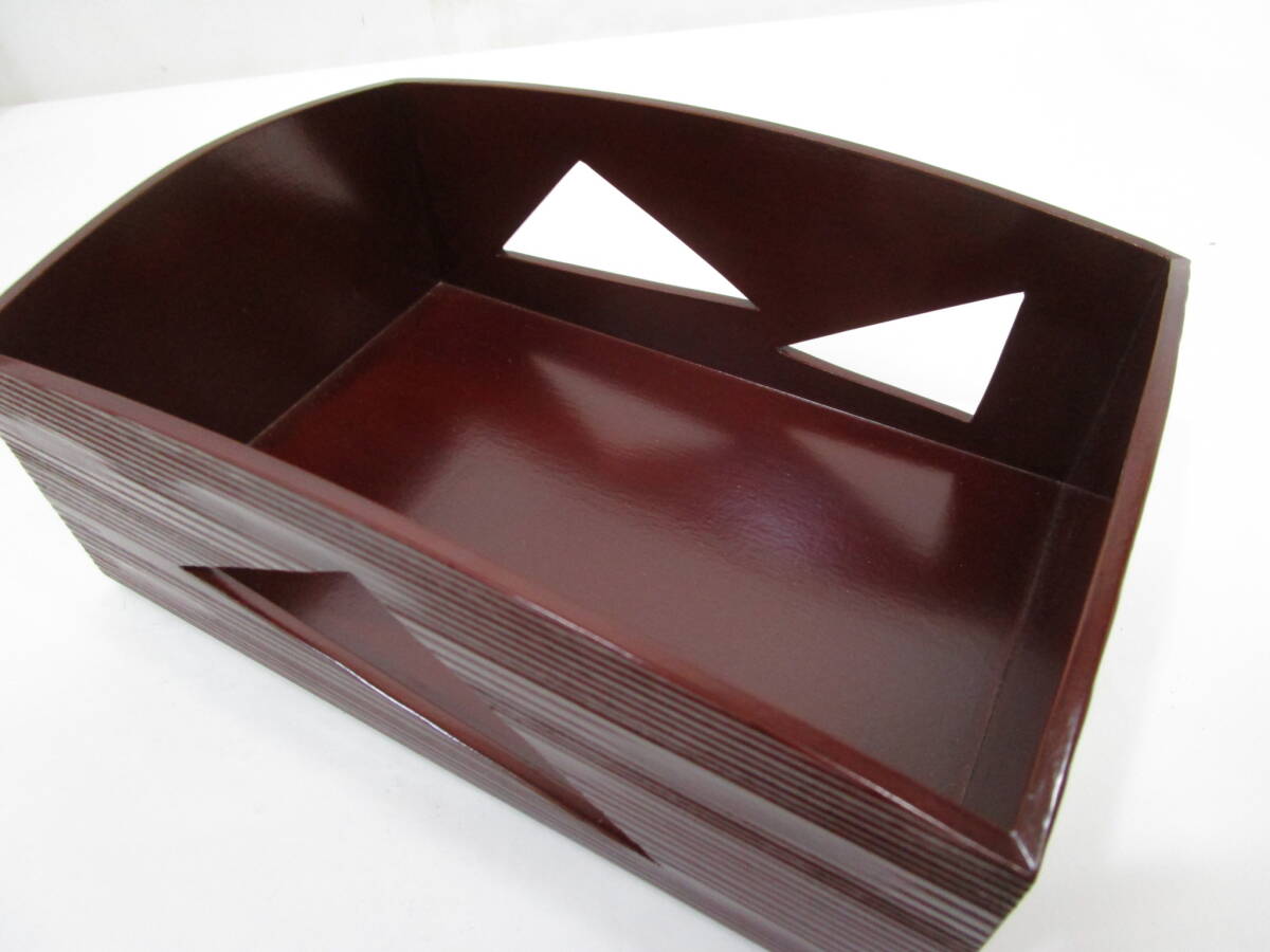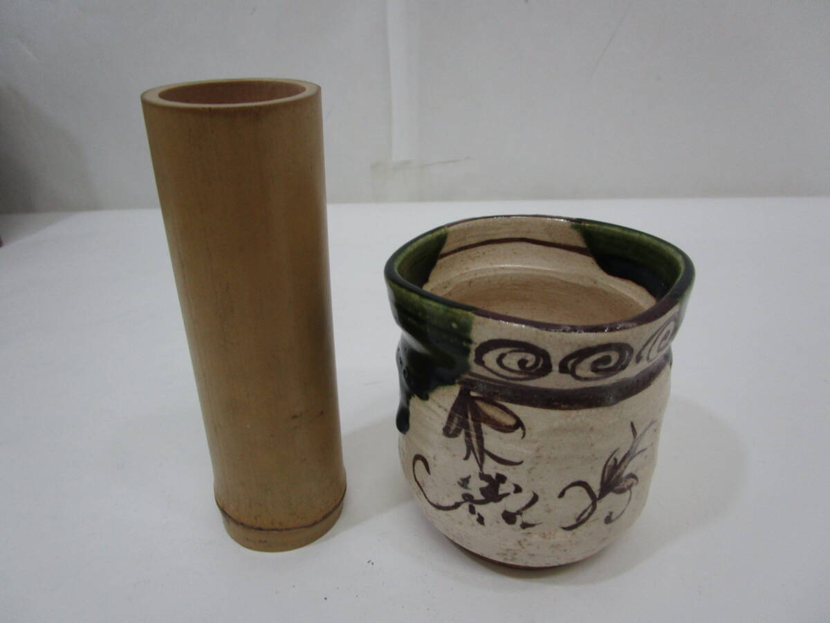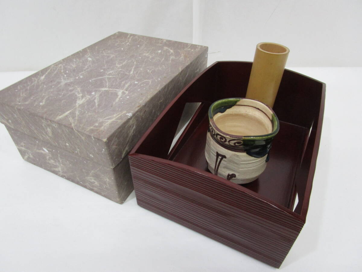 中古茶道具! 表千家 即中斎好写 一閑塗 鱗透莨盆 です。 山口錠鐵作の織部火入と竹灰吹付です。 化粧箱はヤケていますが!莨盆の状態は ★ 傷無く良好。火入は渋入仕上げです。 煙草盆のみ化粧箱(ヤケ有り)入。 どうぞ宜しく。