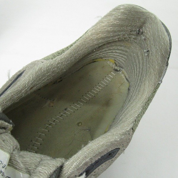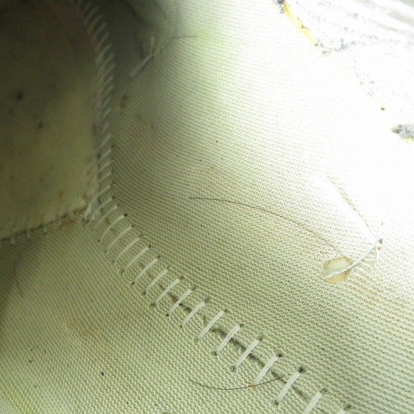 ※使用に伴い、シワ、スレ、汚れ、黄ばみ・変色、破れ、毛羽立ち、毛玉、取り切れない毛・ホコリ・繊維の付着、表記タグの印字薄れ、ソールにひび割れ・すり減り・削れ・付着物等が見受けられます。 ※インソールが欠品しております。 ※ソール接着部分に剥がれがございます。 経年劣化により、着用された際や輸送中に破損、ソールが剥がれる場合がございます。万が一、落札後に破損等がありましても返品等の対応は一切致しかねます。ご理解頂いた上でご入札いただきますようお願いいたします。 | |||||||||||||||||||||||||