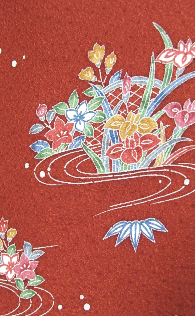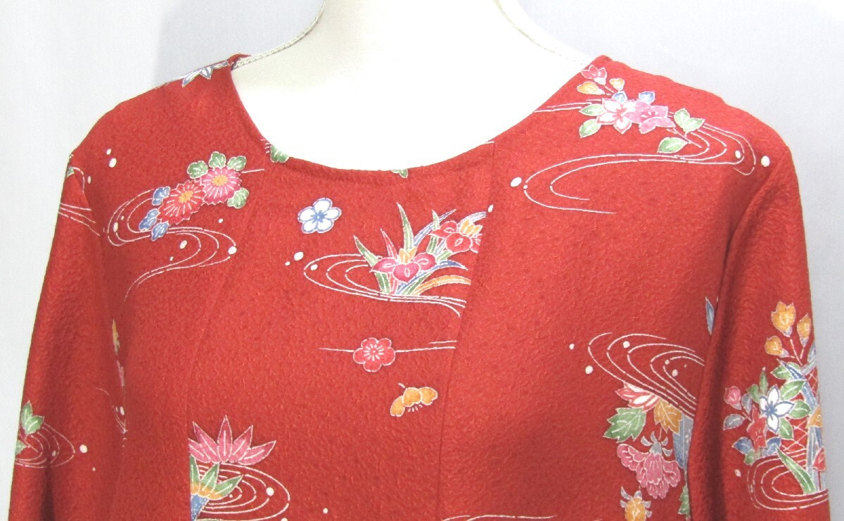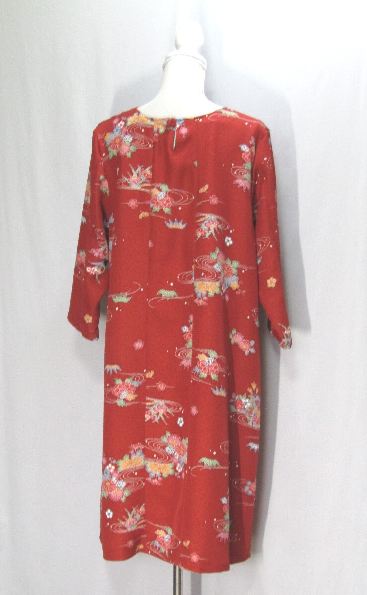 (1053)着物リメイク ハンドメイド「ワンピース」正絹 赤 花