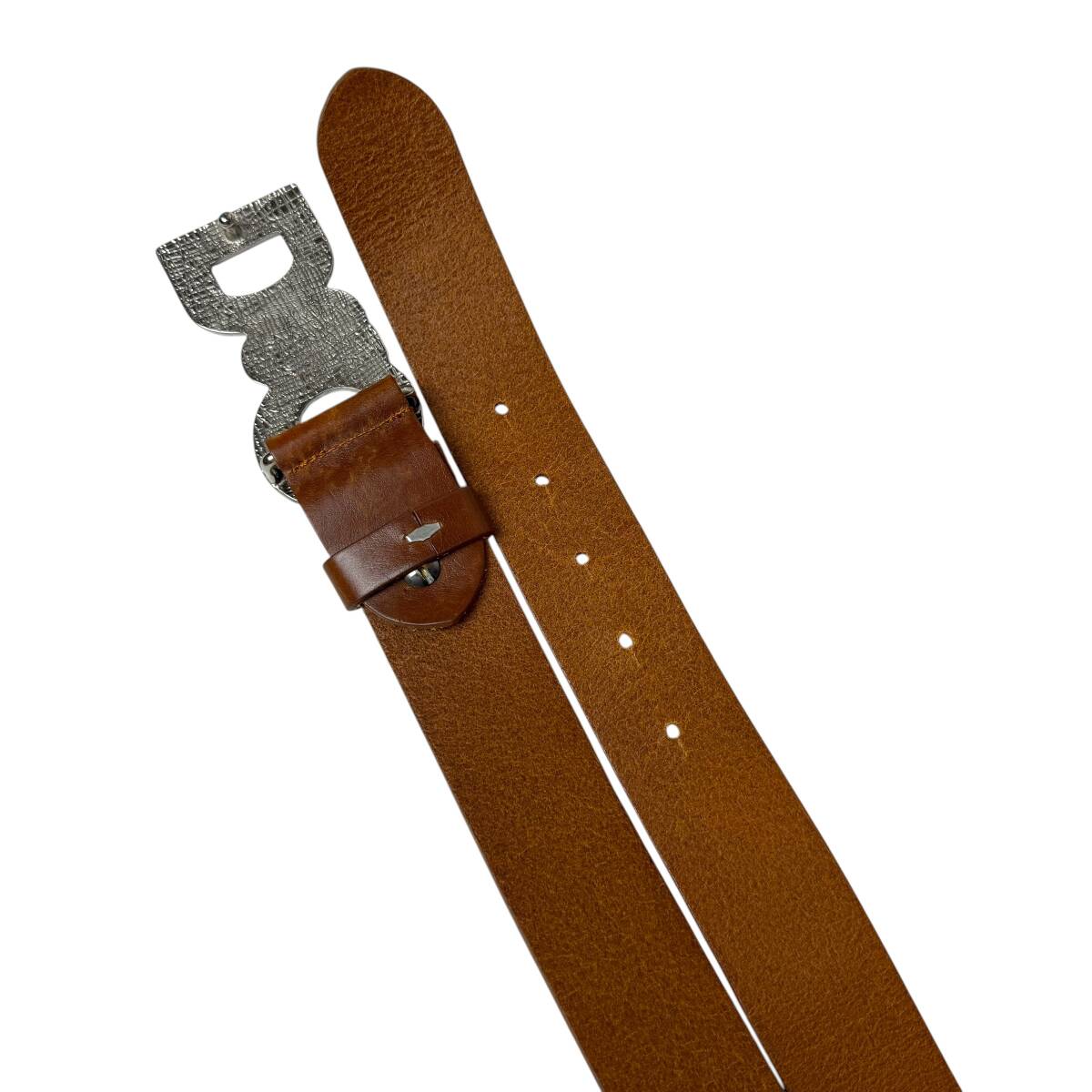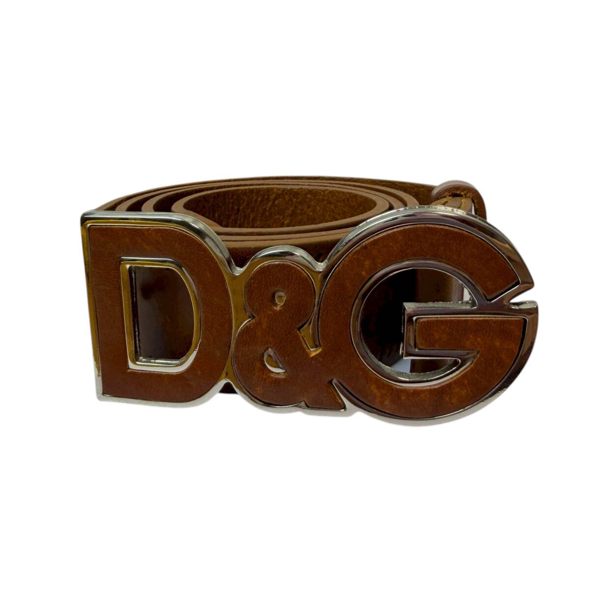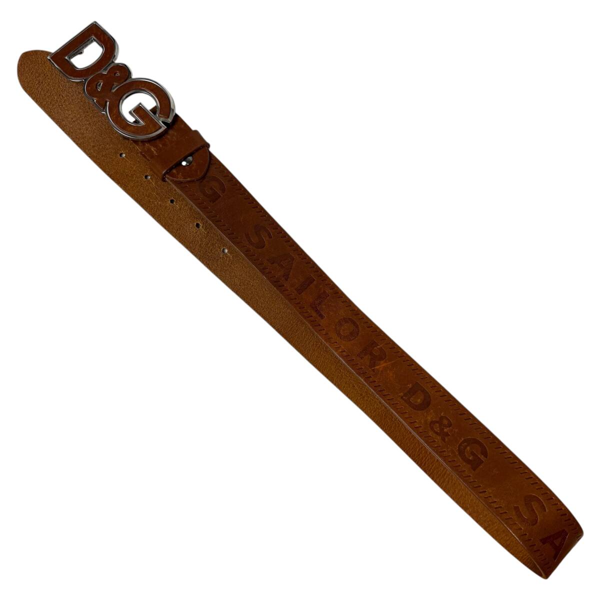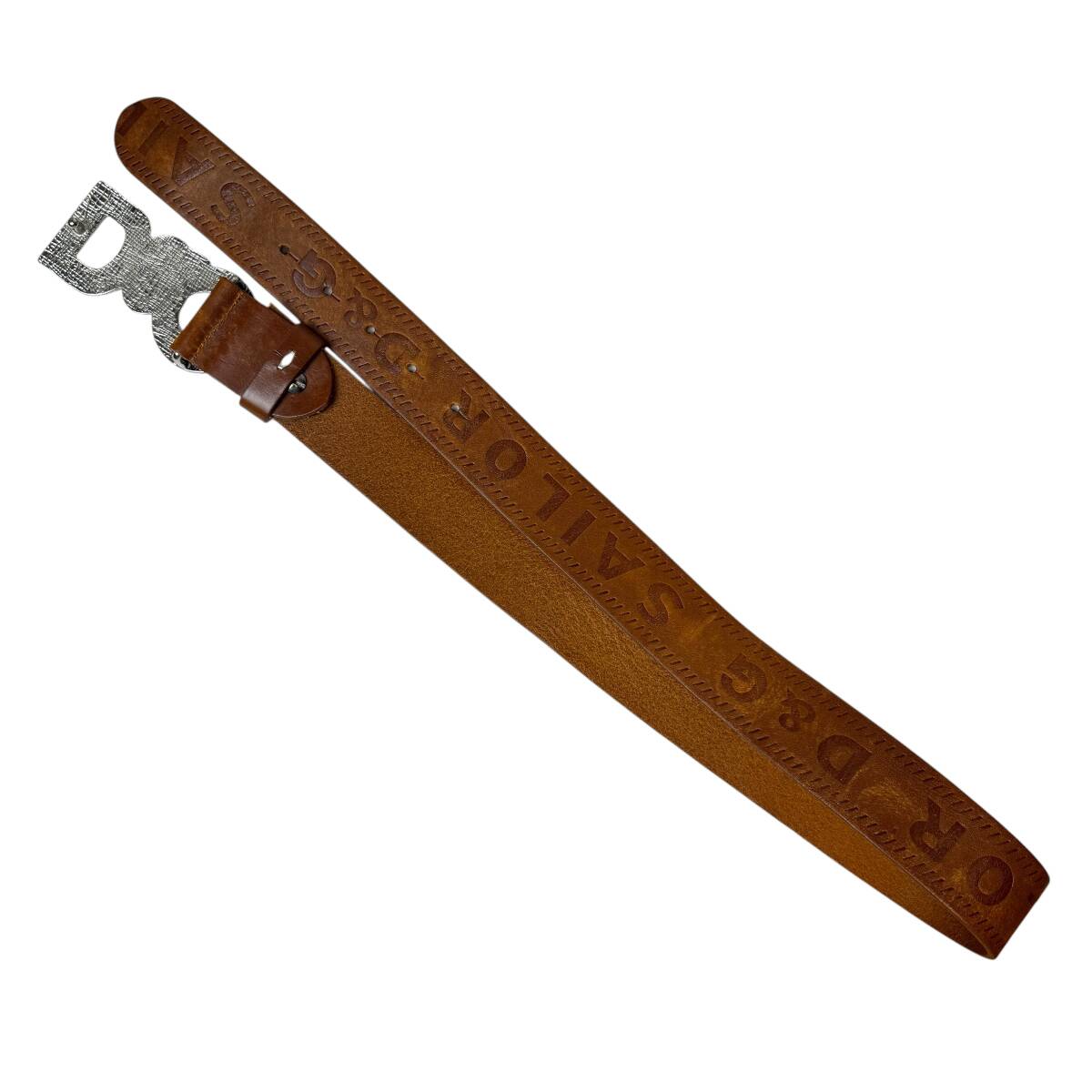 美品 DOLCE&GABBANA 3198 ロゴバックル ベルト レザー 本革 ブラウン系 総柄 D&G SAILOR ドルチェ&ガッバーナ メンズ
