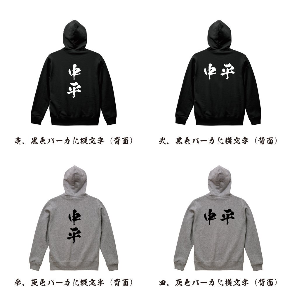 中平 オリジナル パーカ 書道家が書く プリント フルジップ パーカー S M L XL XXL 110 130 150 【 名字 】