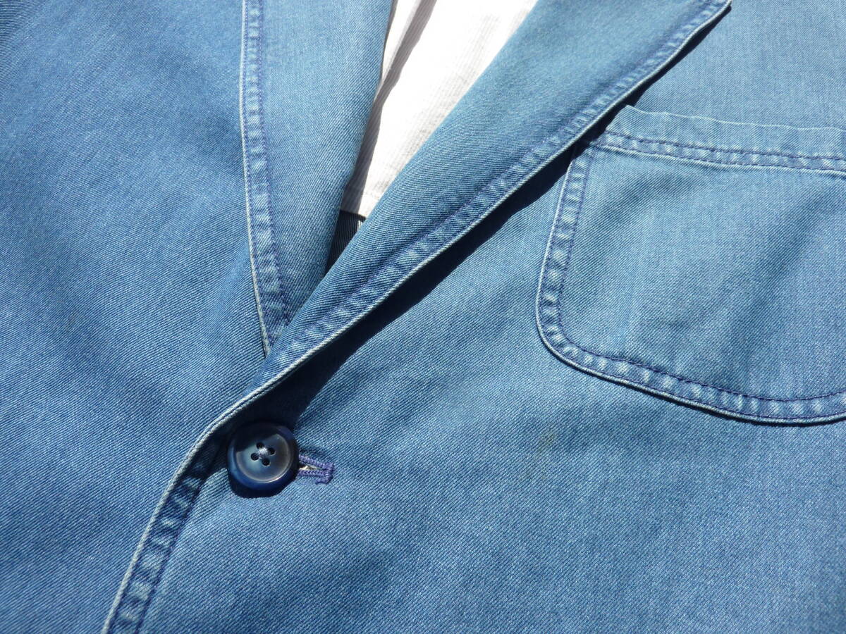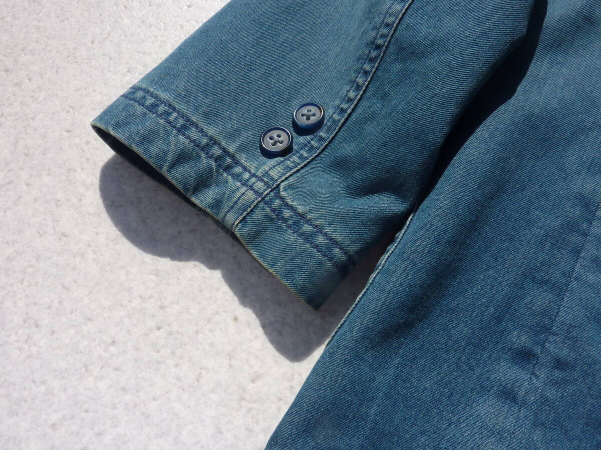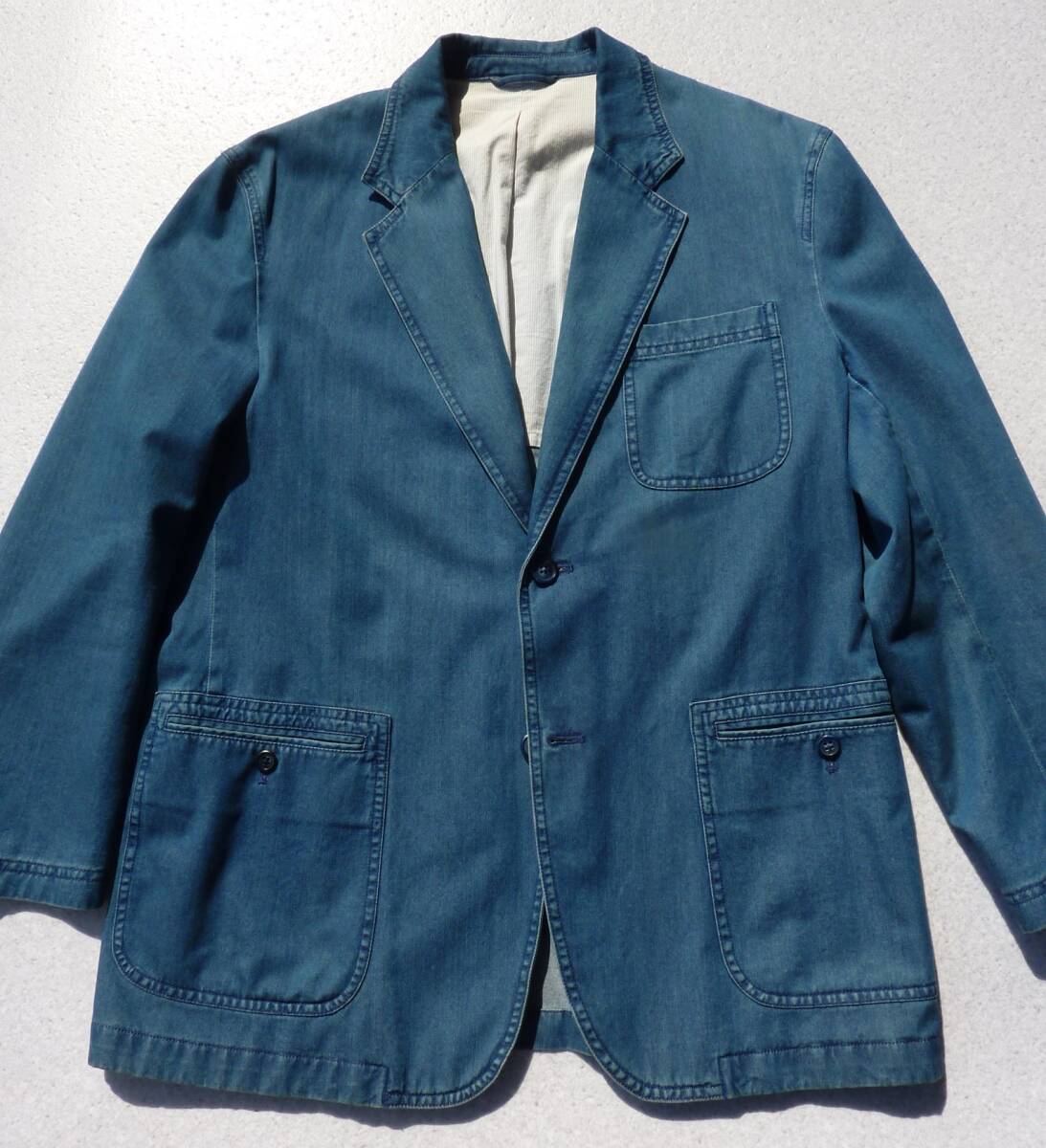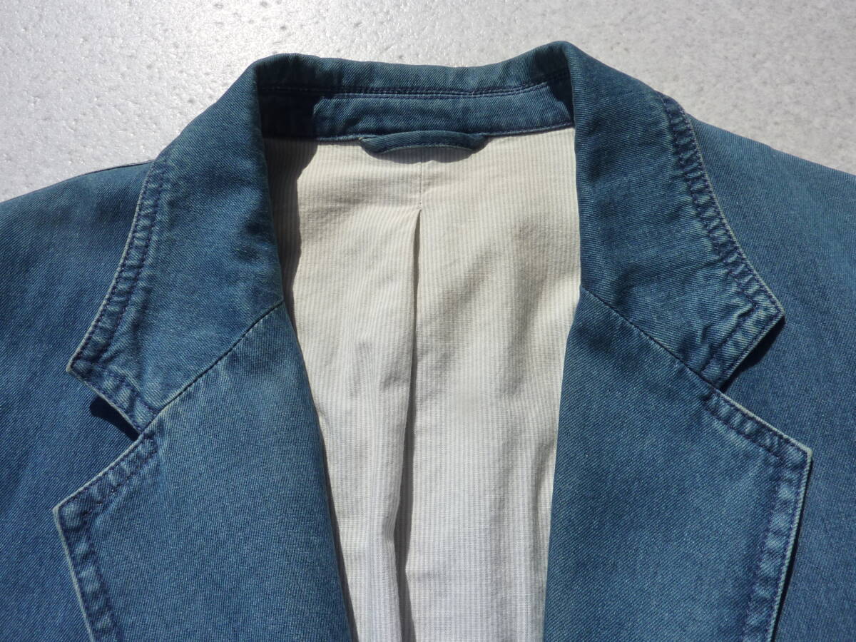 綿100%のフェードデニムで仕立てた、2B・ノーベント・背抜き仕様のジャケットです。