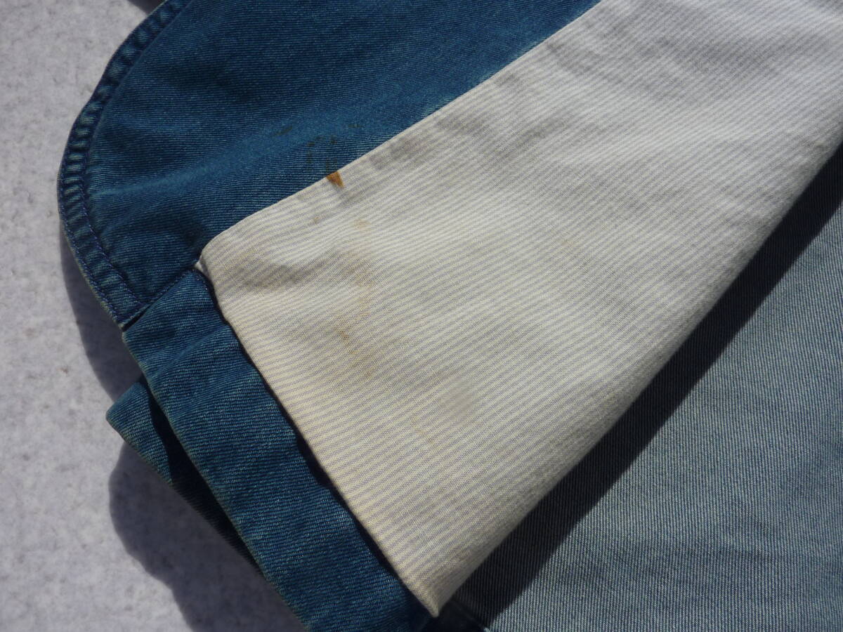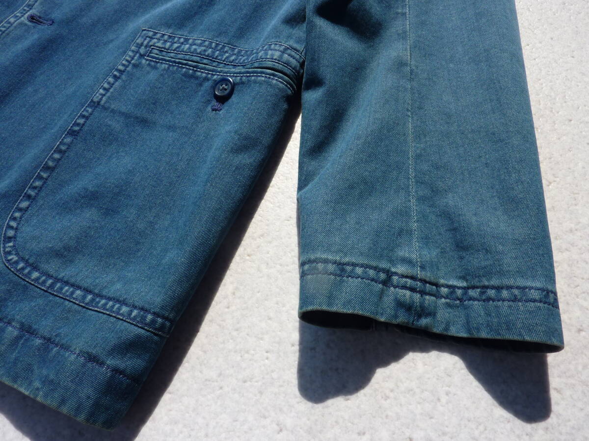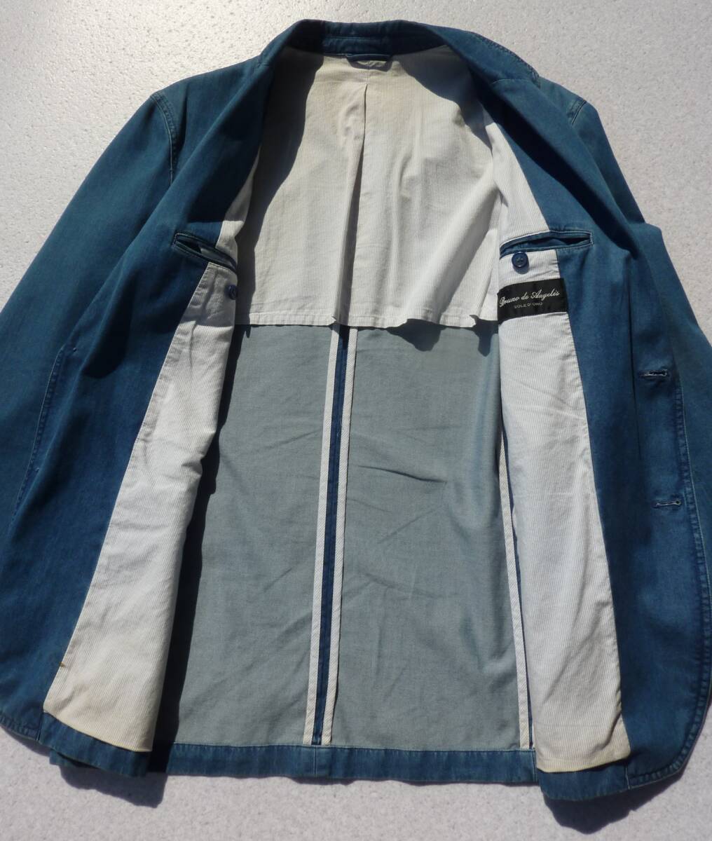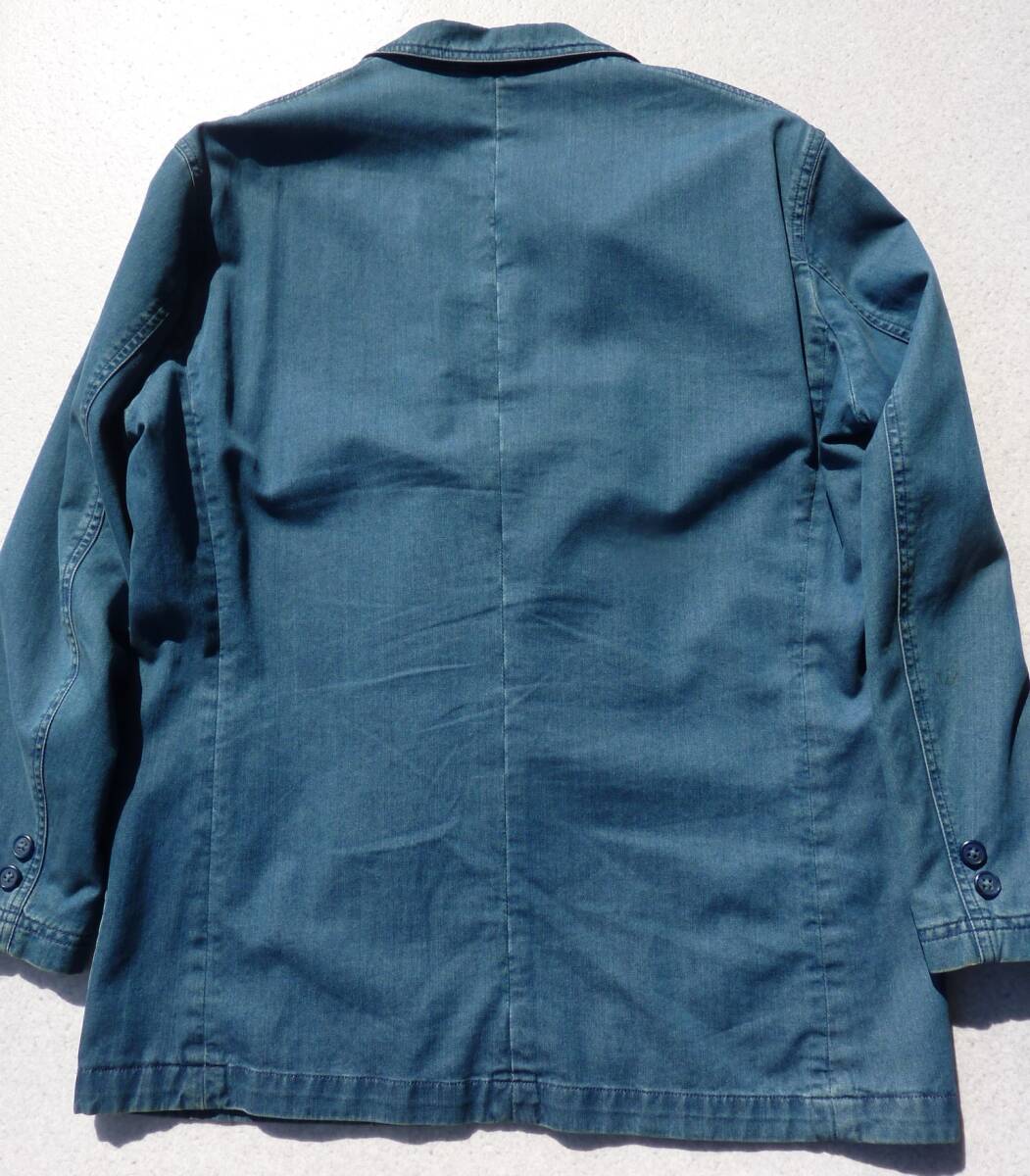 綿100%のフェードデニムで仕立てた、2B・ノーベント・背抜き仕様のジャケットです。