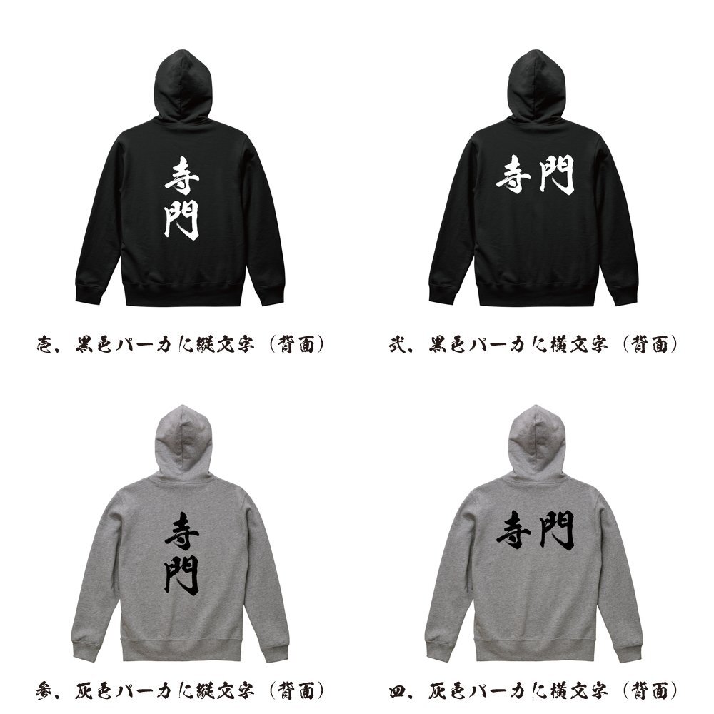 寺門 オリジナル パーカ 書道家が書く プリント フルジップ パーカー S M L XL XXL 110 130 150 【 名字 】