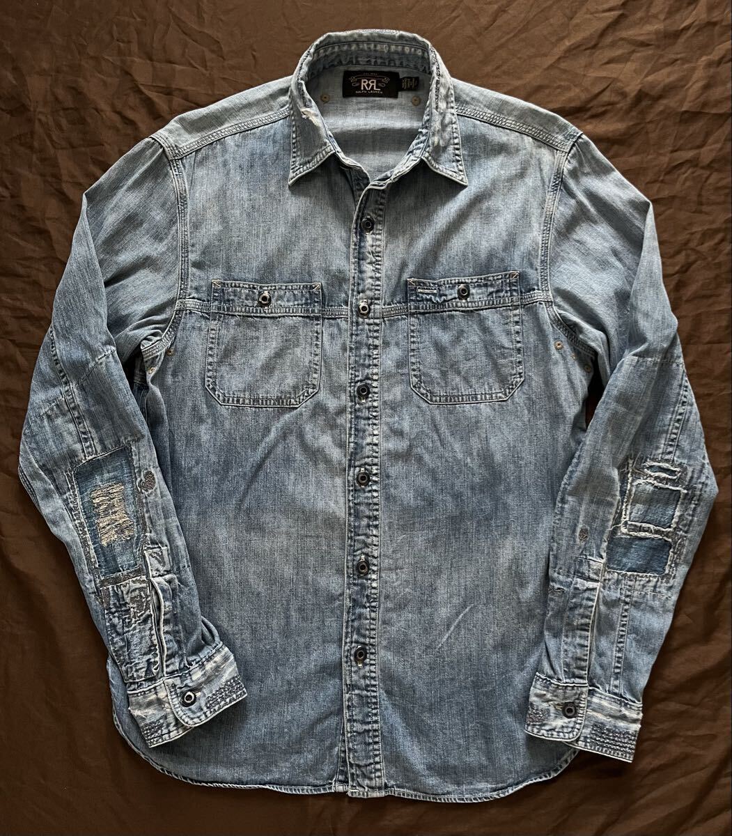 RRLのインディゴ好きには堪らない抜群のフェード感と美しいイントネーションのデニム地に加工を加えたメタルボタンもアクセントとなり、見るからに他とは異なる凄まじい雰囲気に仕上がっています。