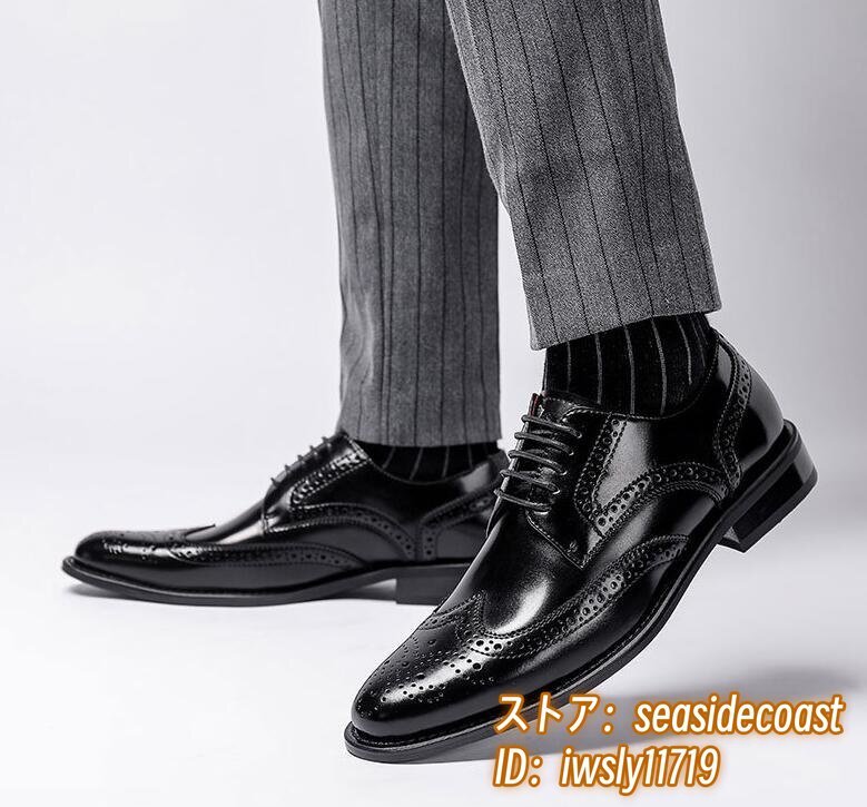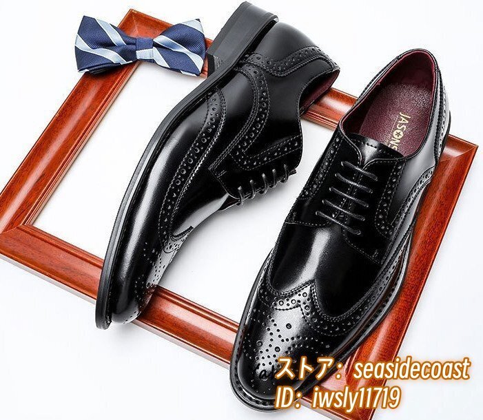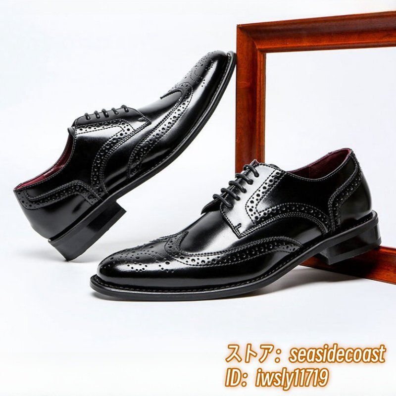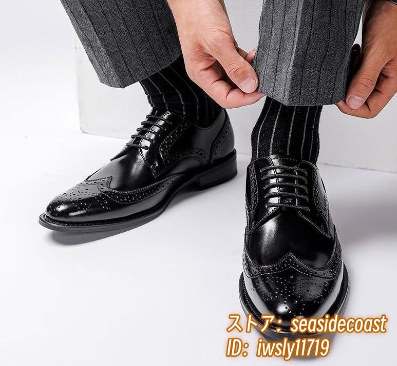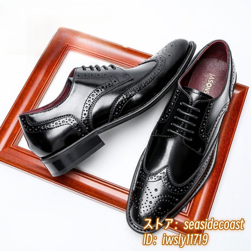 高級品 レザーシューズ 本革 ビジネスシューズ新品 メンズシューズ皮靴ウイングチップ フォーマル 職人手作り 彫り 紳士靴 ブラック 25.0cm