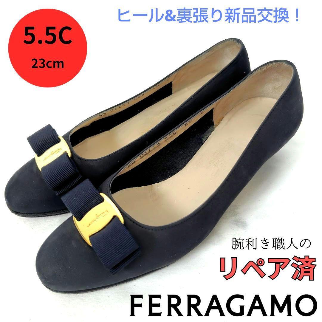 #リペア済み #修理済み #ヒール新品 #クリーニング #フォーマル #卒業式 #入学式#パンプス#ブランド#ハイブランド#ネイビー#フェラガモ#Ferragamo#レディースシューズ#スエードパンプス#23cm#フェラガモパンプス#おしゃれ#シンプルパンプス#ローヒールパンプス#ヴァラパンプス